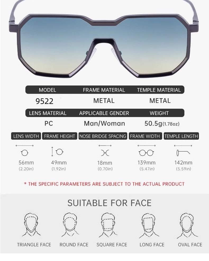 Gafas de sol de una pieza de estilo europeo y americano con montura grande transfronterizas para fotografía callejera en línea, gafas de sol populares y geniales para conducir.