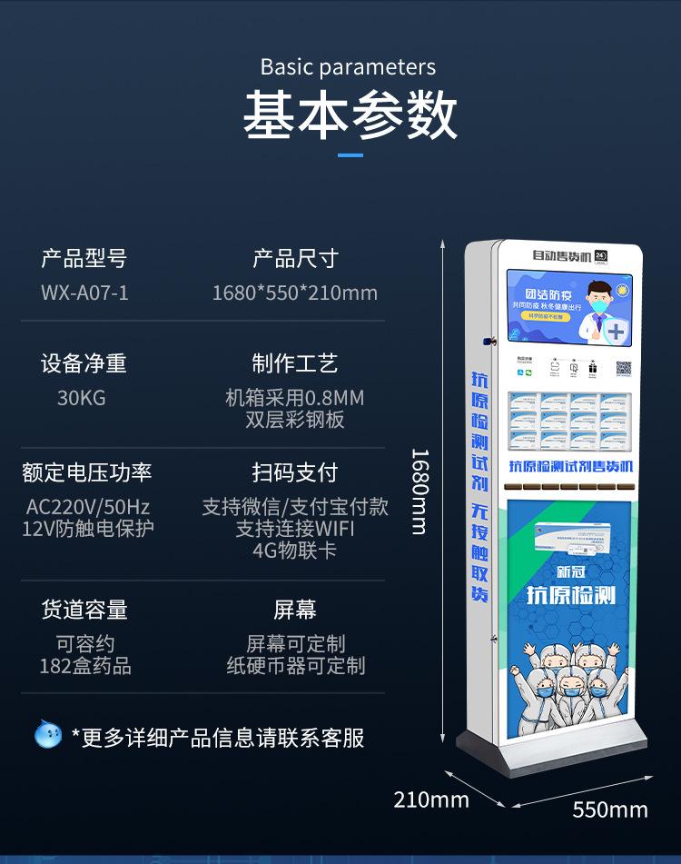 Máquina expendedora de kits de prueba de antígenos, máquina expendedora comercial de autoservicio sin contacto, fabricante OEM A07-1