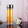 Vaso de Vidrio de Doble Capa para Hombres y Mujeres Hogar Oficina Portátil Vaso de Agua con Tapa Transparente Aislamiento Térmico Taza de Té con Impresión de Logotipo