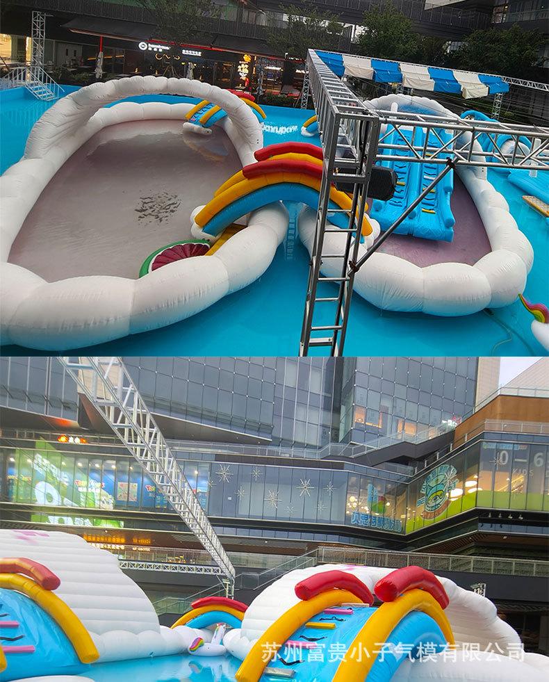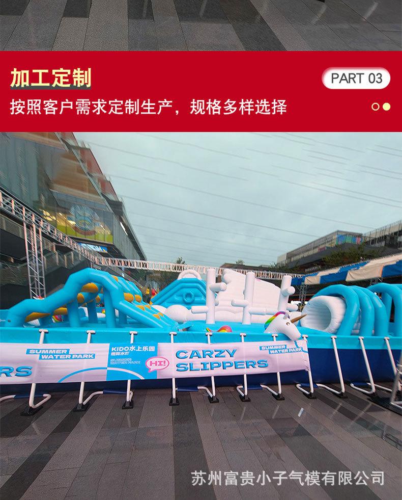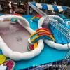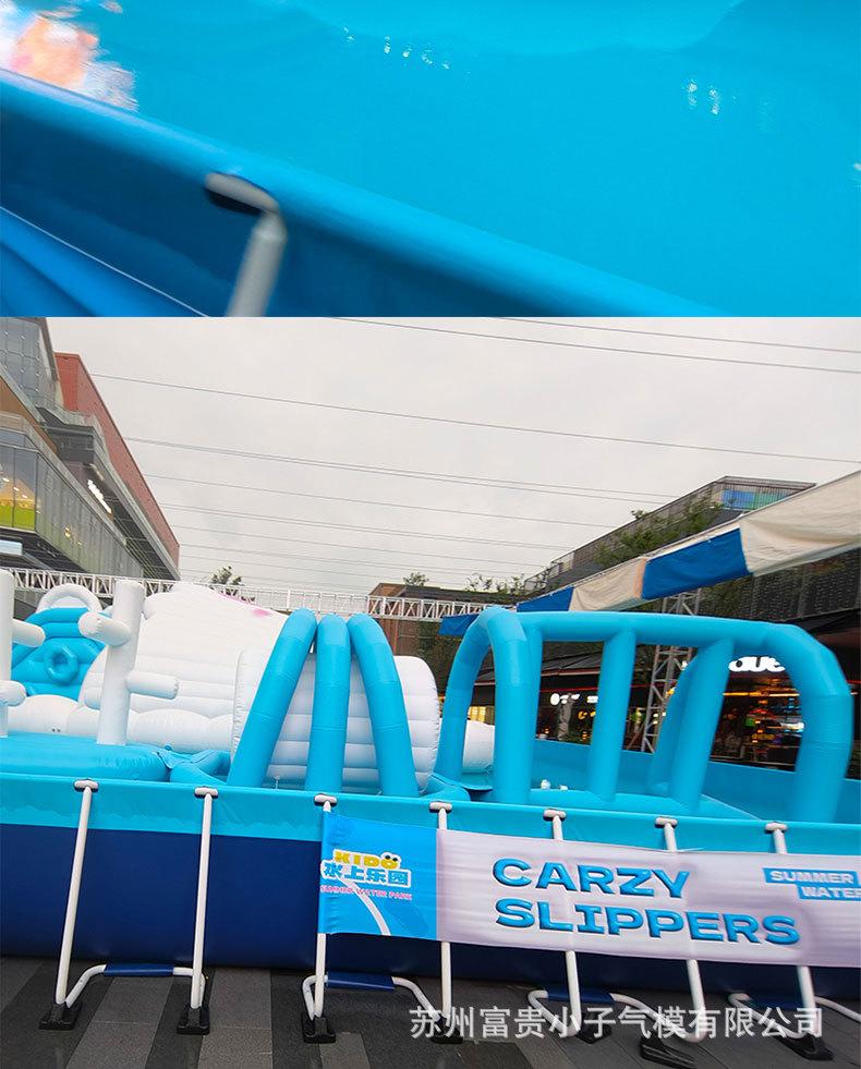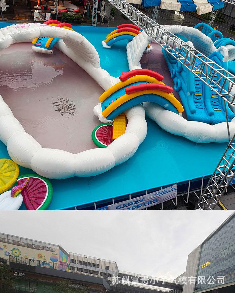 Piscina inflable personalizada con soporte, parque acuático, instalaciones de entretenimiento, parque infantil con hileras flotantes de PVC, bote inflable