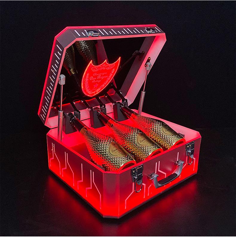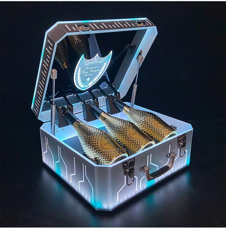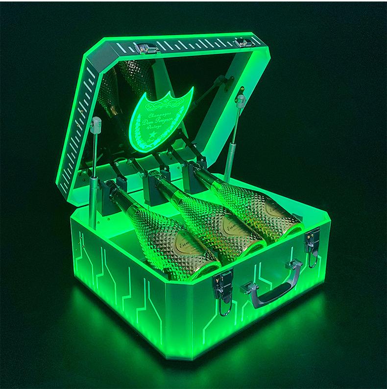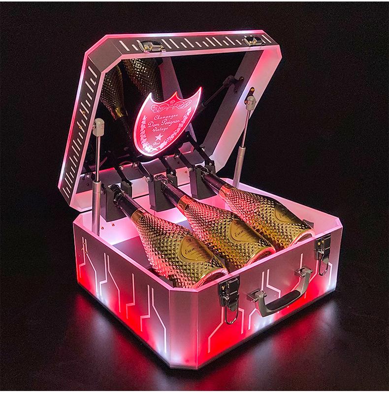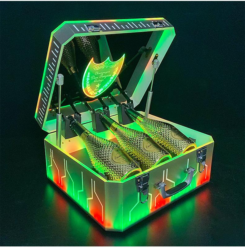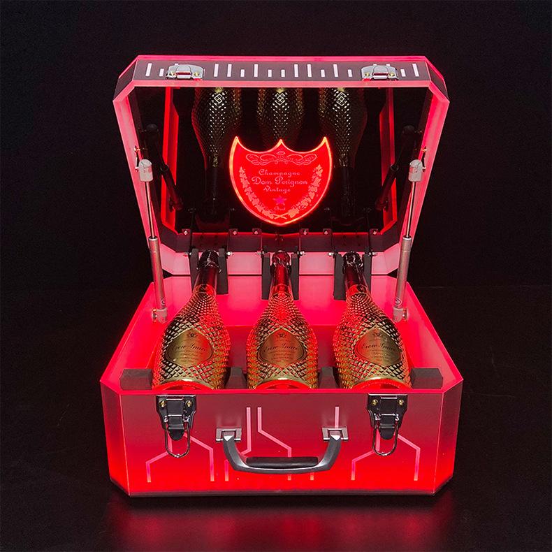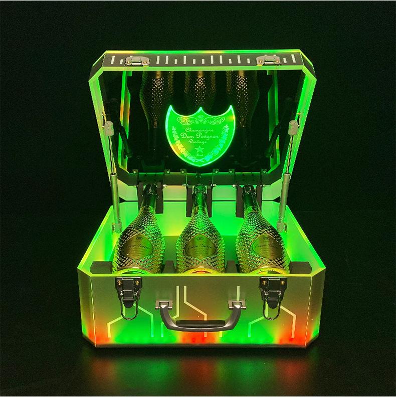Nueva caja de champán LED de color mágico, escudo acrílico, estante para vino de champán, bar KTV, juego de vino, atmósfera, negro, melocotón, un vino