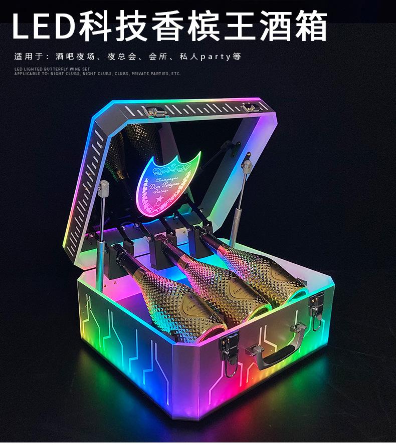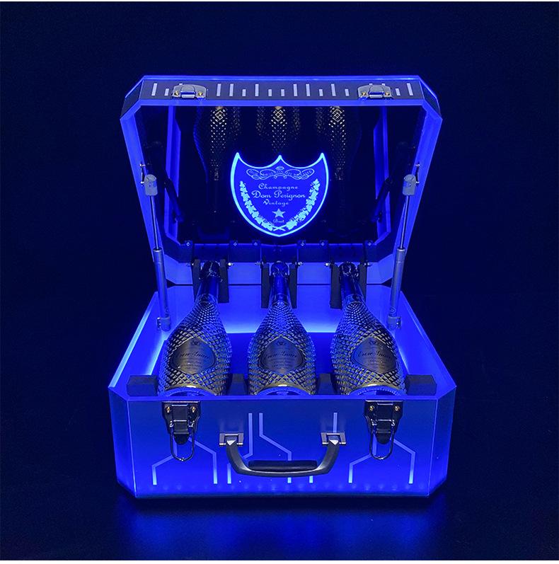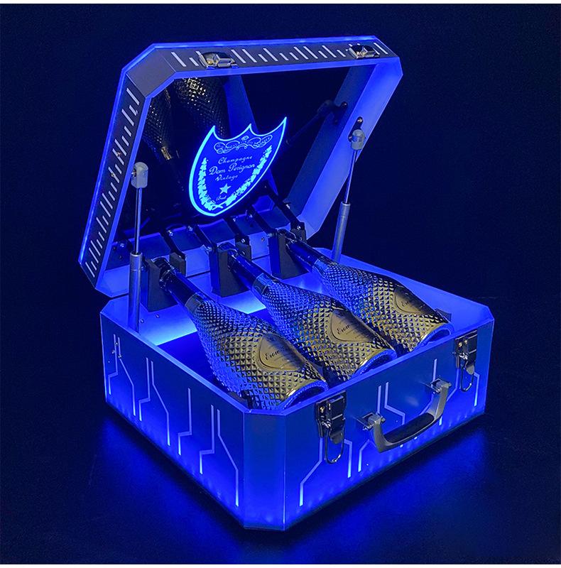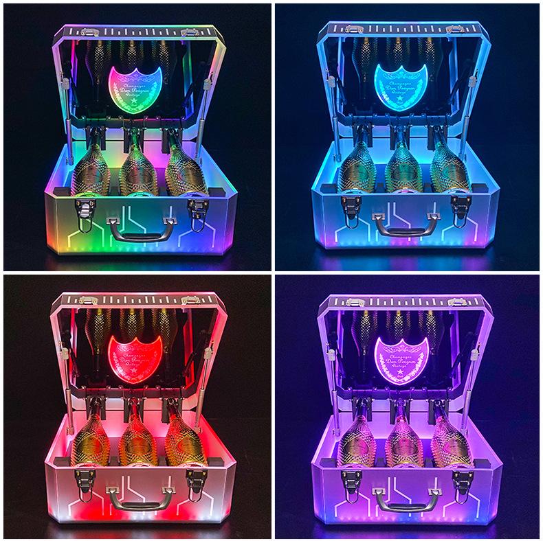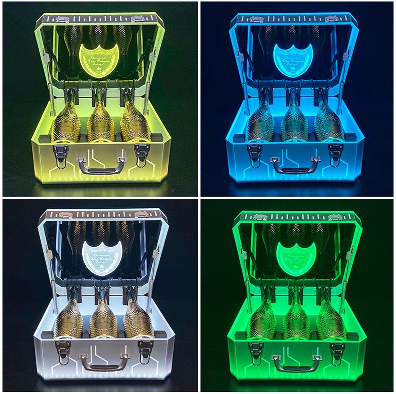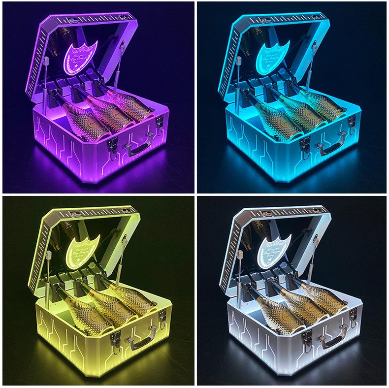 Nueva caja de champán LED de color mágico, escudo acrílico, estante para vino de champán, bar KTV, juego de vino, atmósfera, negro, melocotón, un vino
