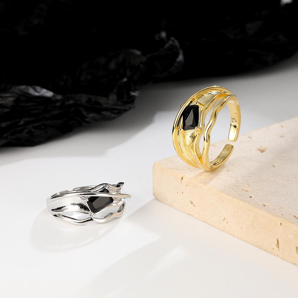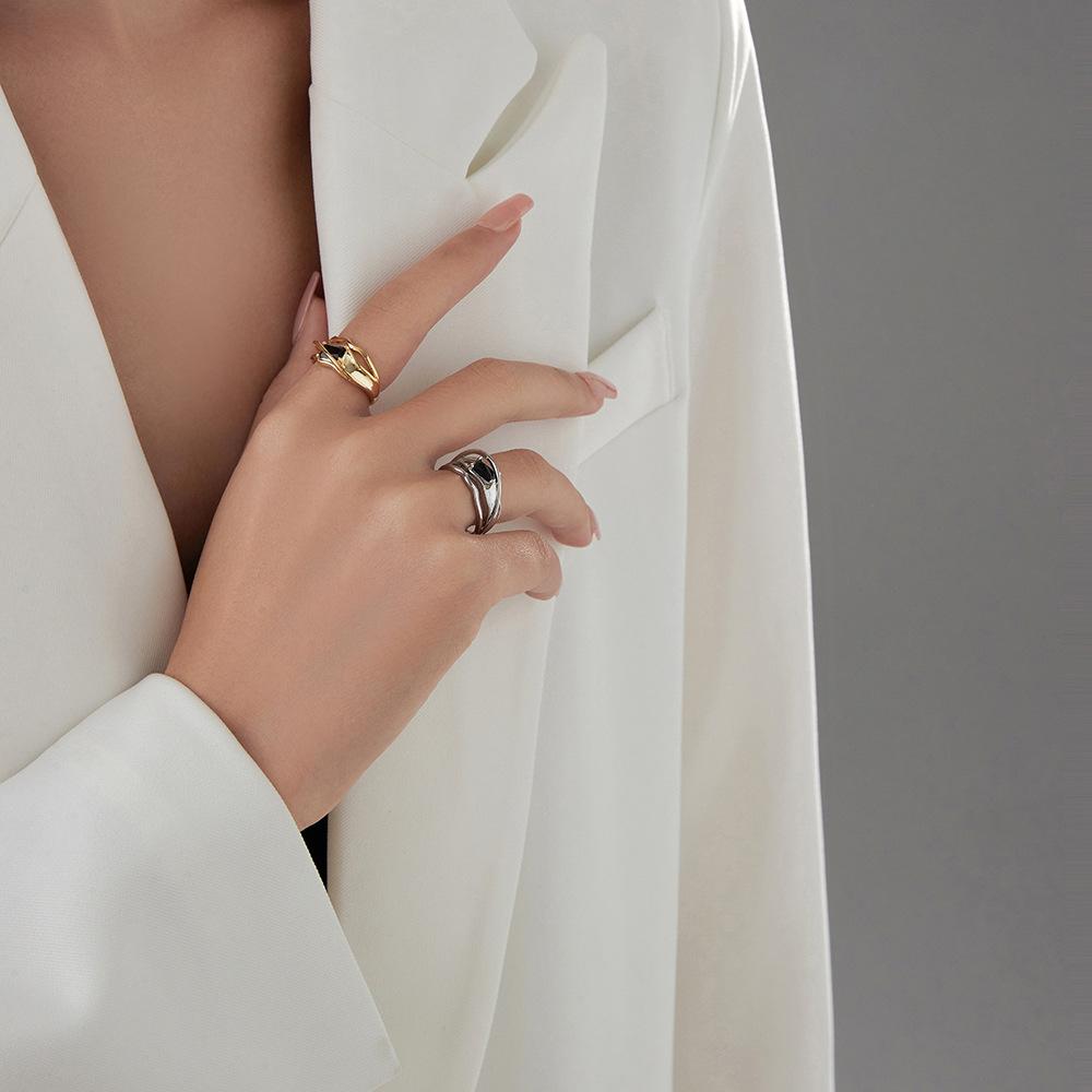Anillo de línea de diseño nicho anillo doble personalidad exagerada anillo de circonita personalidad femenina