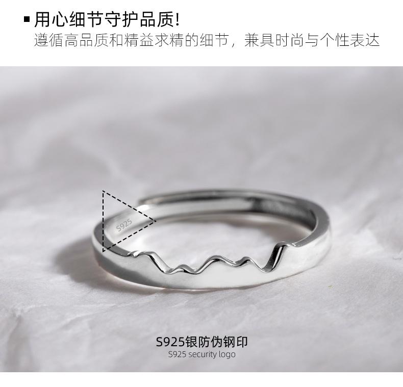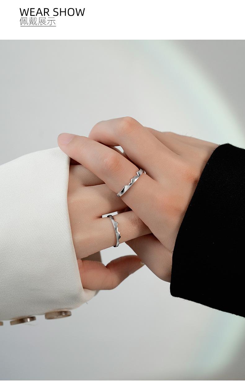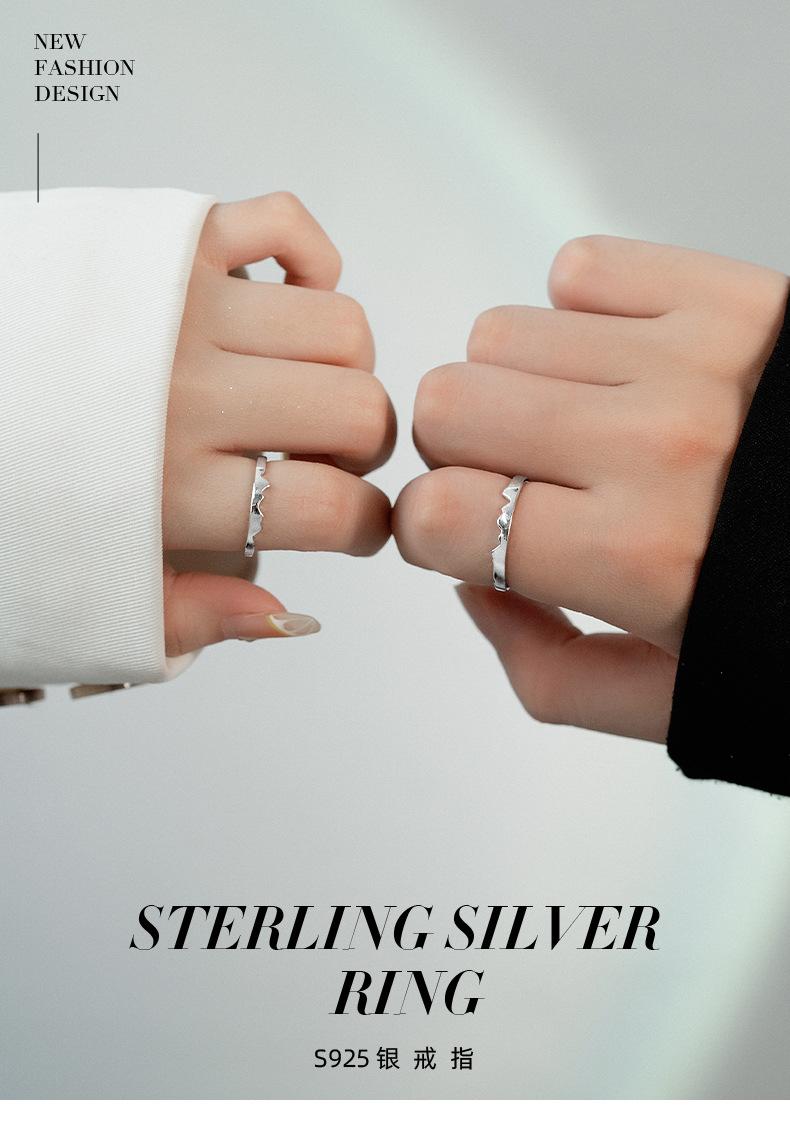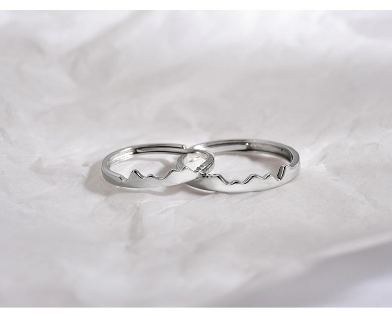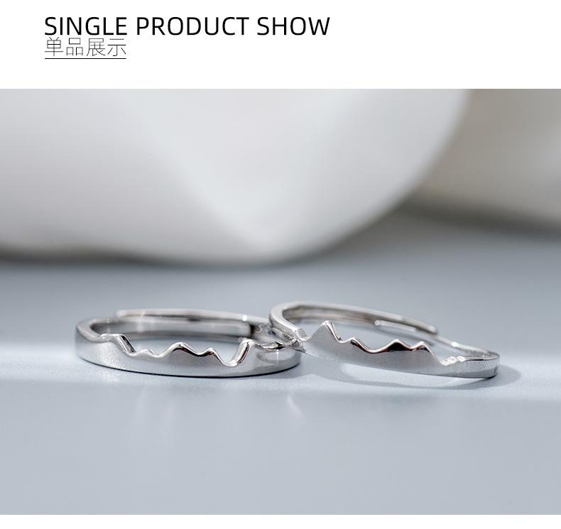 Anillo de compromiso de pareja de Banyan Tree S925 en plata de ley con diseño de montaña, ideal como regalo de San Valentín, con boca viva, para hombre y mujer.