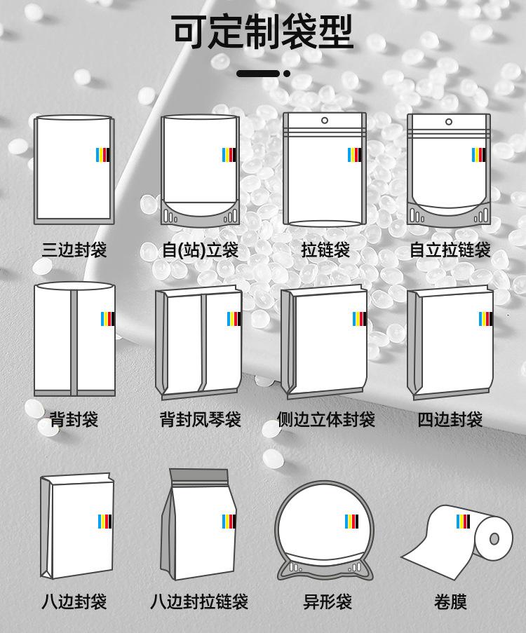 Three-side seal, Self-standing bag, Zipper bag, Self-supporting zipper bag, Four-sided bag, Eight-sided bag, E...