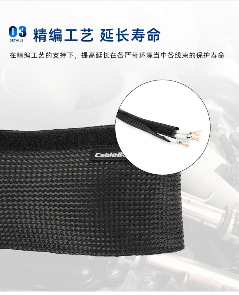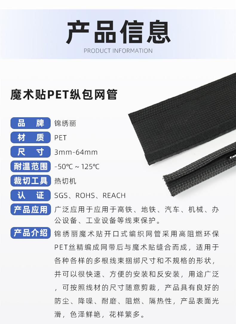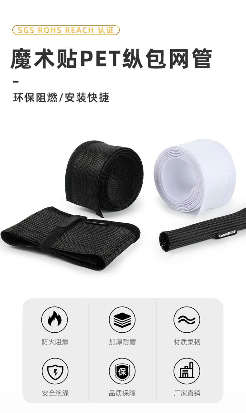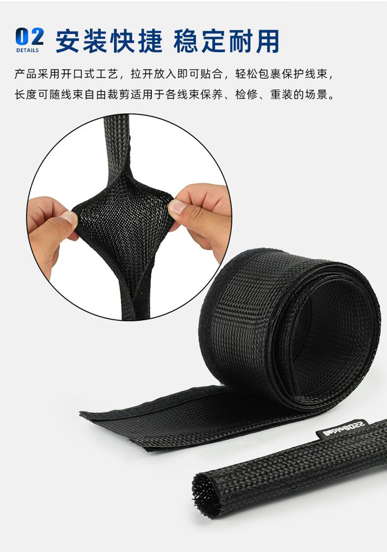 Funda protectora de cable de arnés de cables de poliéster de 40 mm con velcro trenzado para mascotas con apertura autoadhesiva personalizada de fábrica
