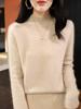 Nuevo Jersey de Punto de Lana Pura de Cuello Redondo para Otoño e Invierno para Mujer, Suéter de Manga Campana, Medio Cuello Alto, Ajustado, Versátil, Básico para Llevar Debajo