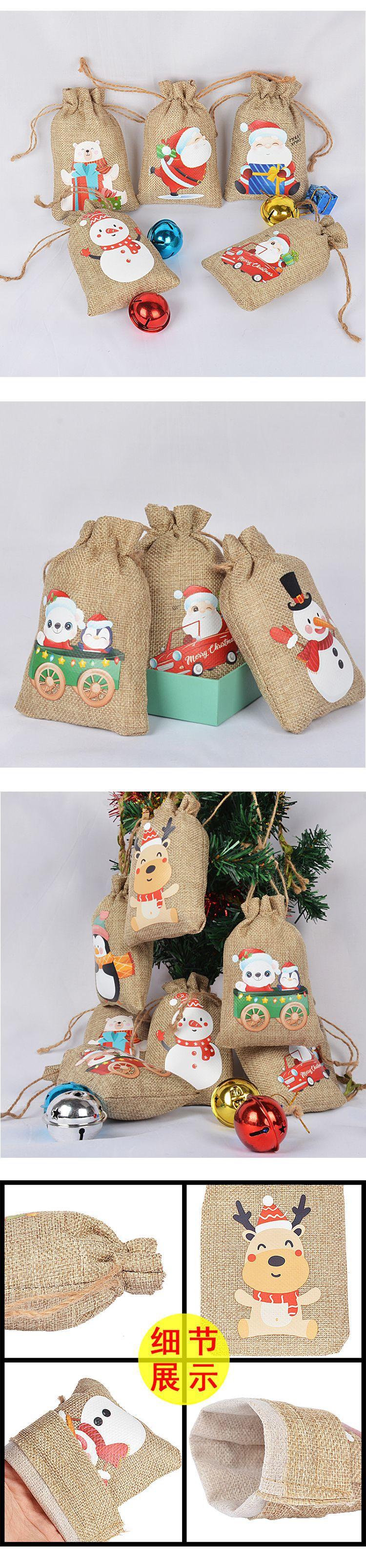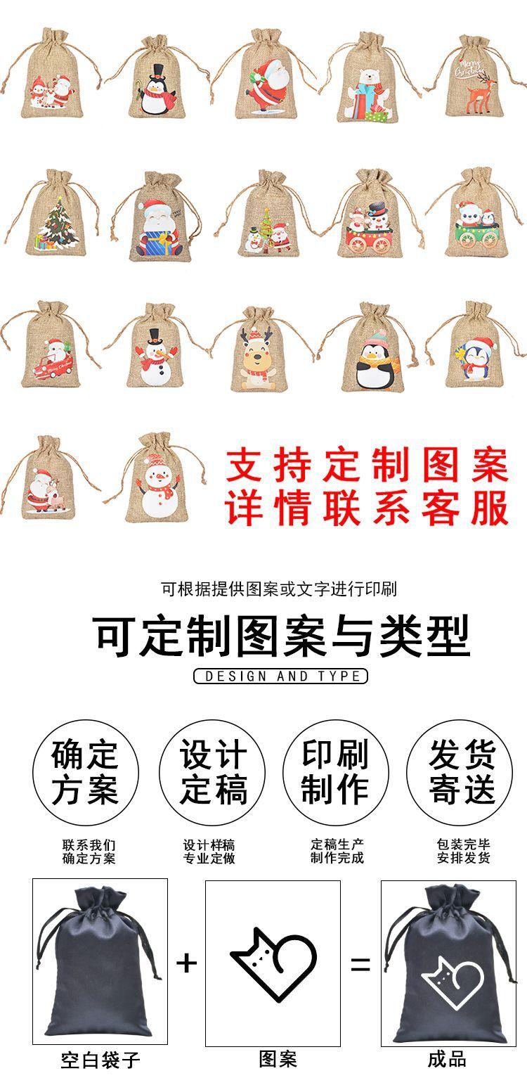 2025 nuevas explosiones transfronterizas Caja de regalo de lino navideña Bolsa de embalaje Bolsa de almacenamiento de viga de joyería de dulces en stock al por mayor