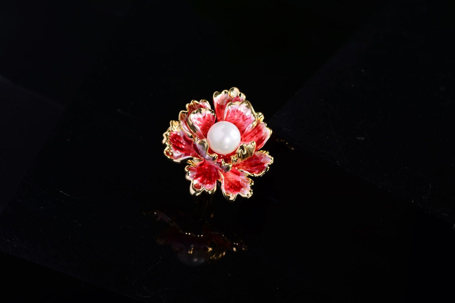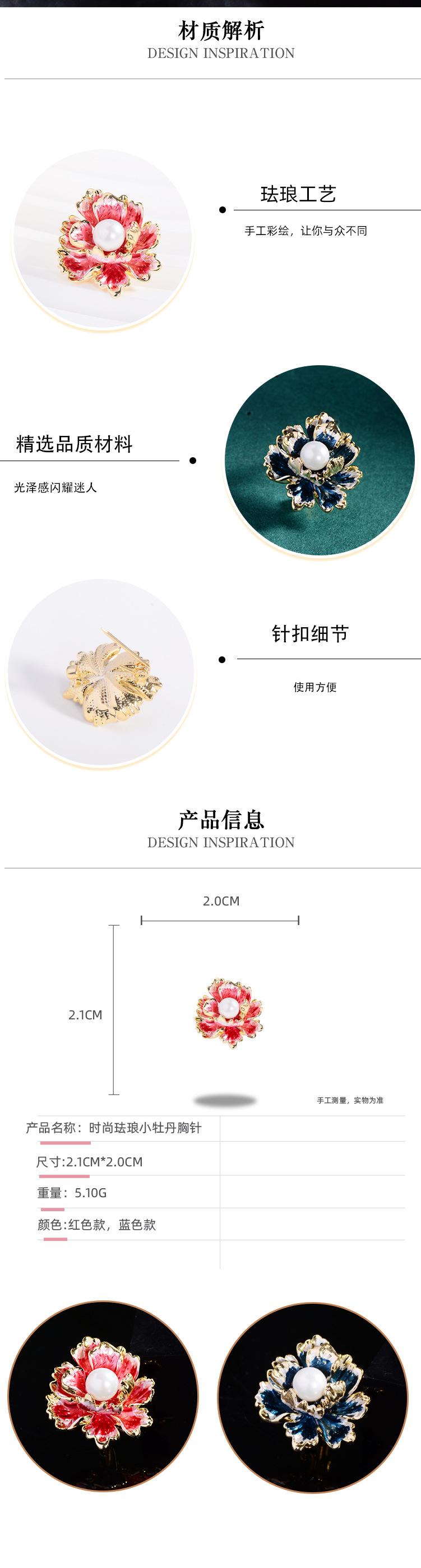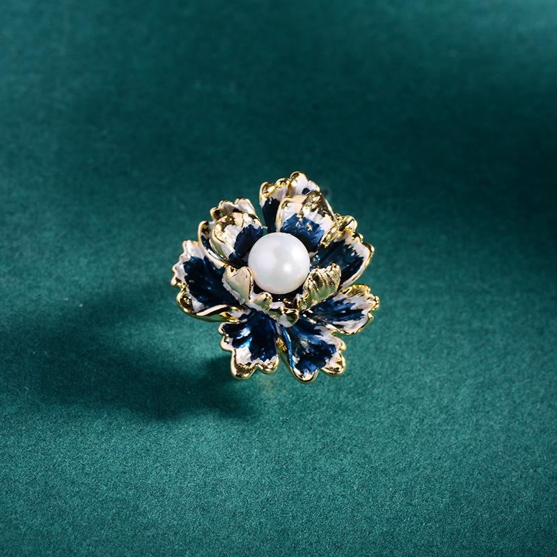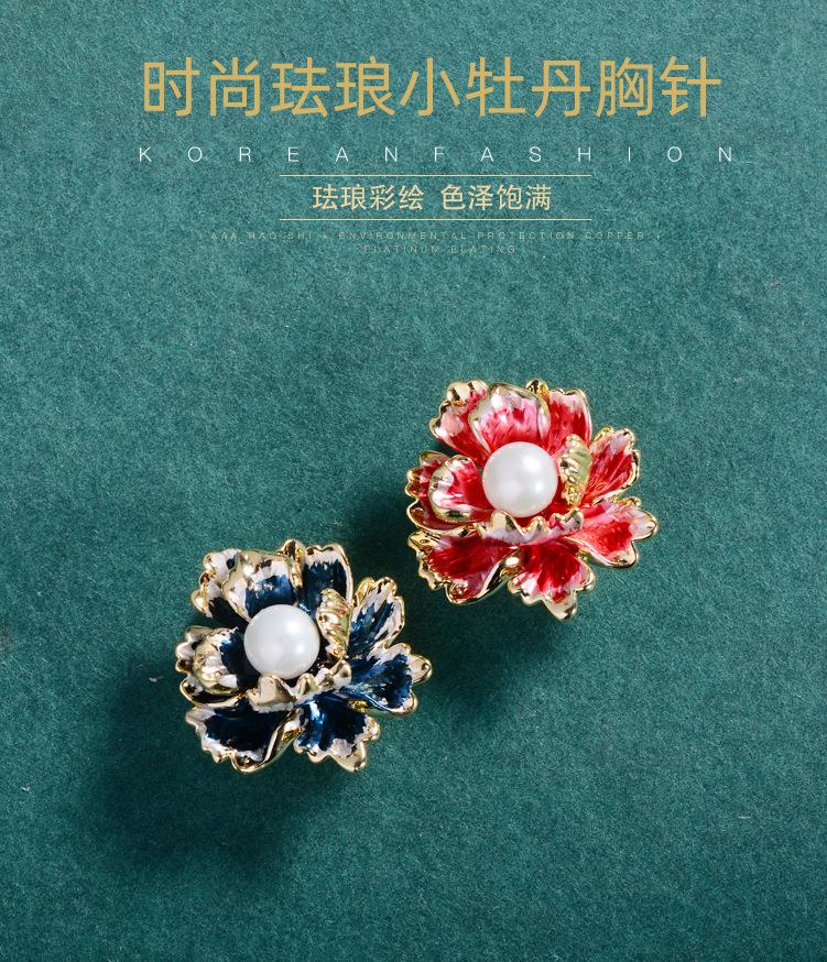 Broche de flor de peonía elegante estilo Chanel retro, pintado con esmalte, accesorio de traje de alta gama, ramillete, alfiler para cuello, venta al por mayor