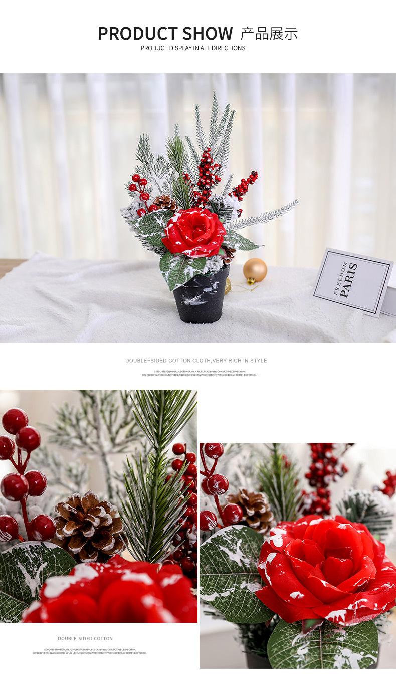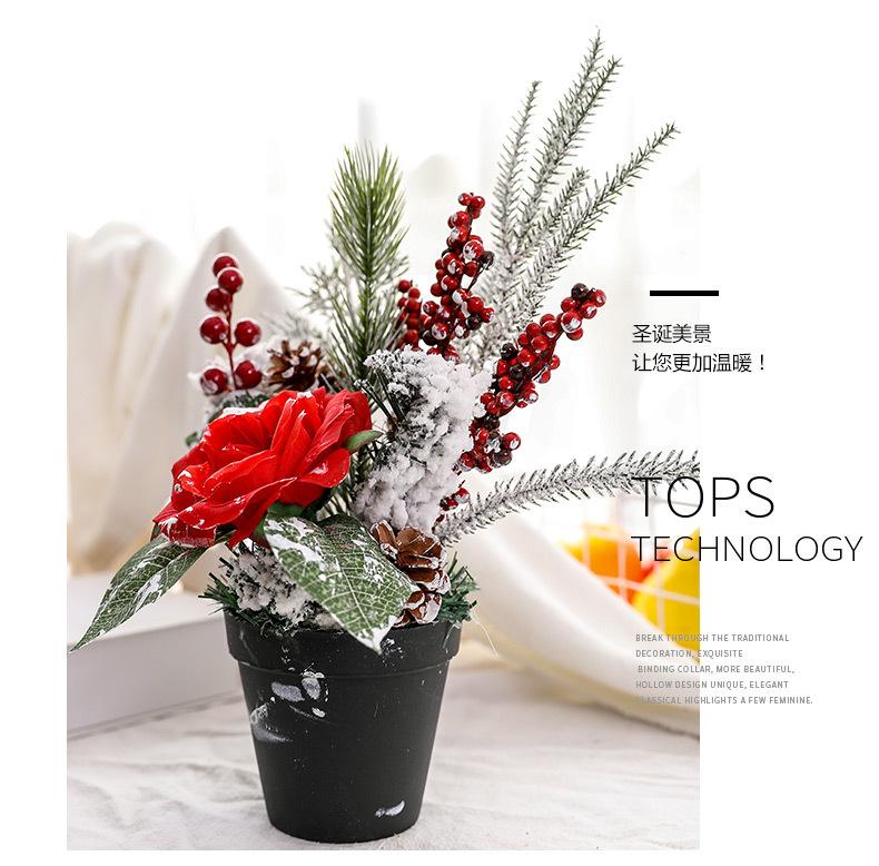 Mini macetas navideñas de flores rojas de Amazon para escritorio, adornos navideños para árbol de Navidad.