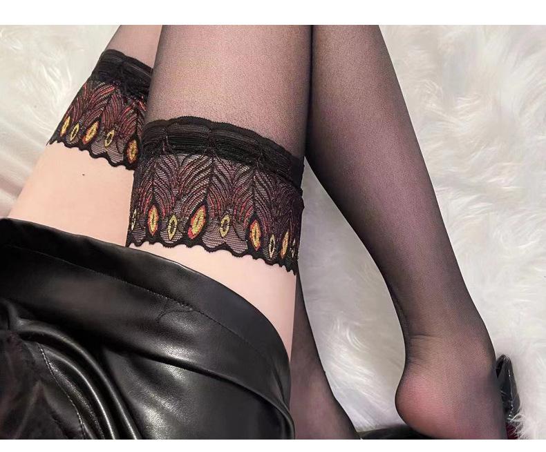 Medias Pavo Real Azul ropa interior sexy ultrafina transparente pluma club nocturno medias sexys medias negras de seda hasta la rodilla tentación