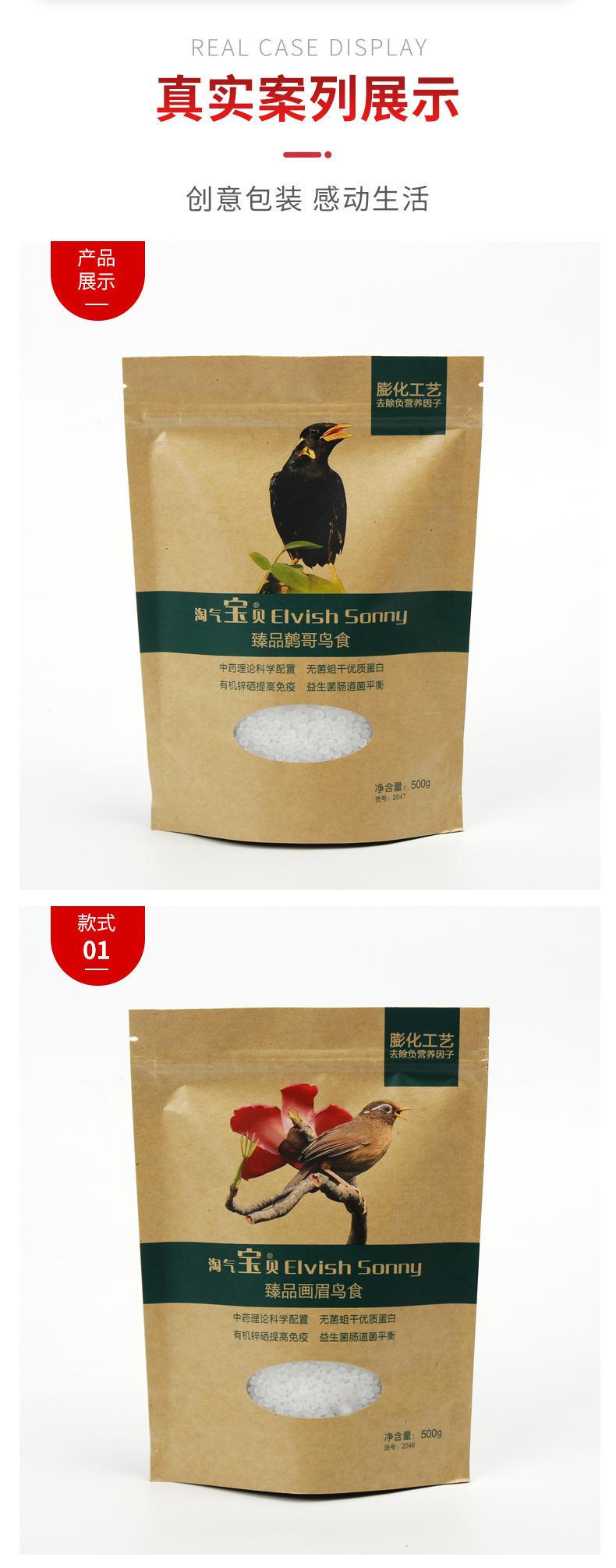 Bolsa de Papel Kraft para Comida de Aves Personalizada para Mascotas Bolsa Sellada Auto-Sellable de Pie Bolsa Aluminizada con Cierre Ziploc Sellada y a Prueba de Humedad