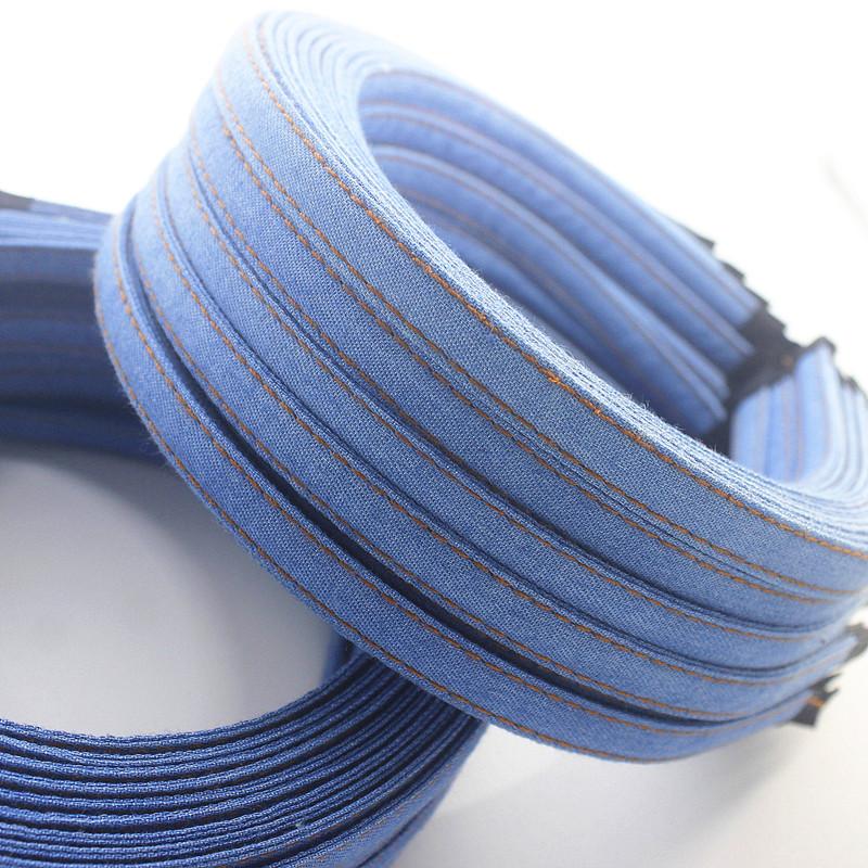 Venta al por mayor de alta calidad Sombreros Estilo coreano Banda para el cabello estilo mezclilla de 10 mm Tela de diseño Accesorios para el cabello