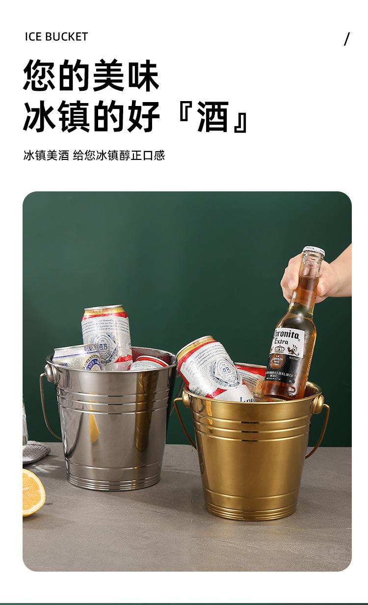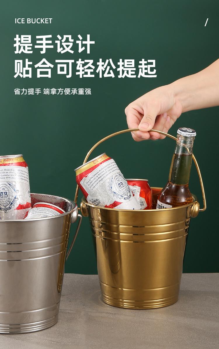 Cubo de hielo de acero inoxidable dorado para uso comercial, para bar, KTV, champán, almacenamiento de hielo, cerveza, vino y bebidas.
