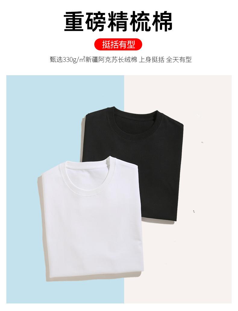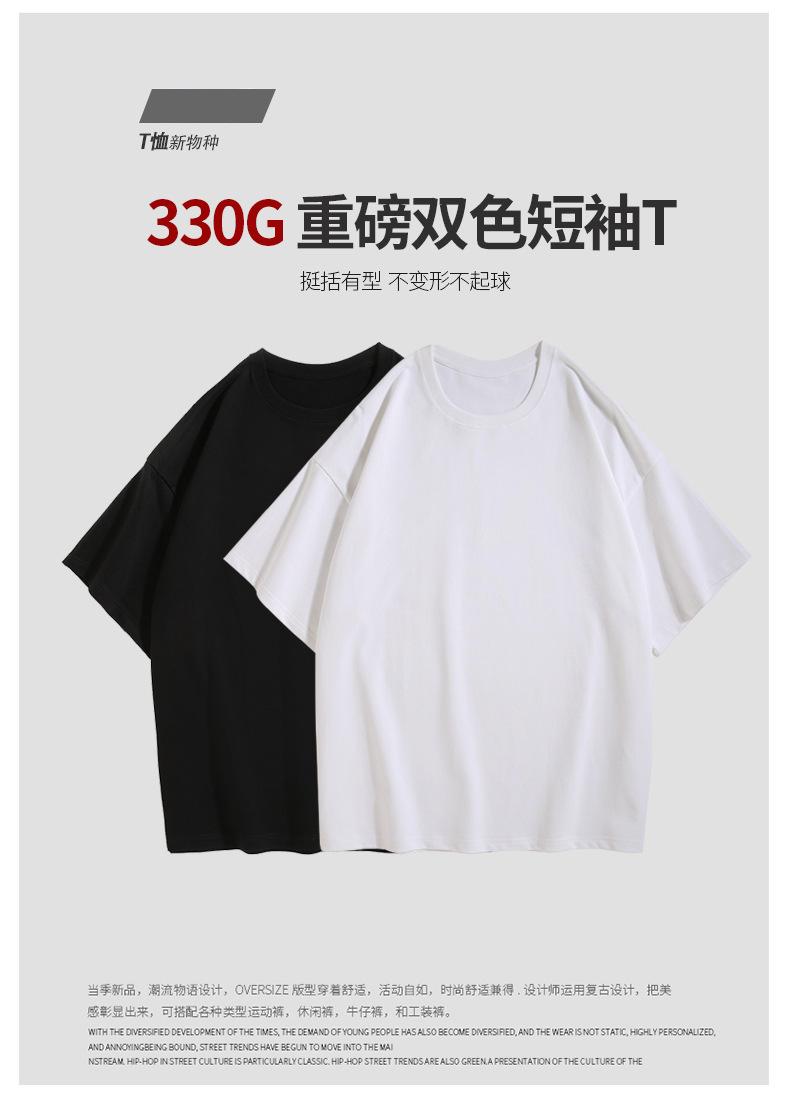 Camiseta personalizada de 330 g de peso pesado, color liso, cuello redondo, manga corta, para hombre y mujer, ropa de trabajo, logotipo imprimible y bordado.