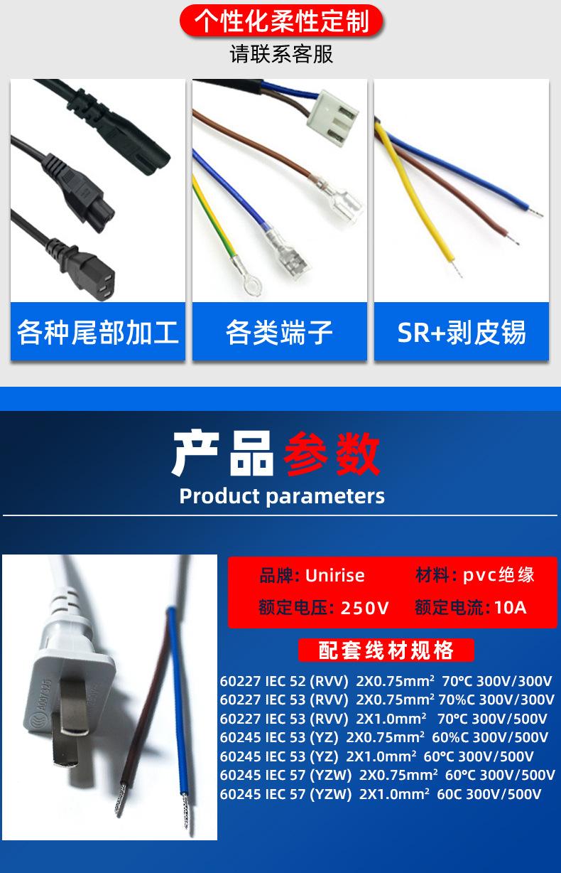 Cable de alimentación estándar nacional de dos enchufes planos 3C, línea de conexión eléctrica de dos enchufes y ocho colas, cable de alimentación estándar nacional