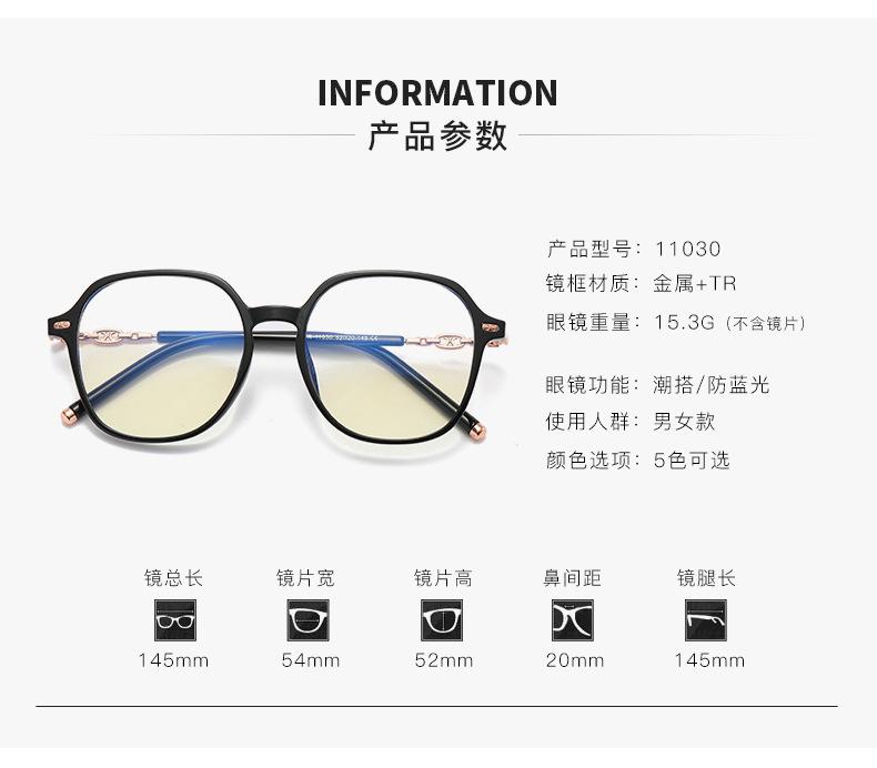 Montura de gafas para miopía retro nueva TR90 para hombre y mujer, mismo estilo, montura completa, montura grande, montura redonda, montura de gafas anti-luz azul, espejo plano