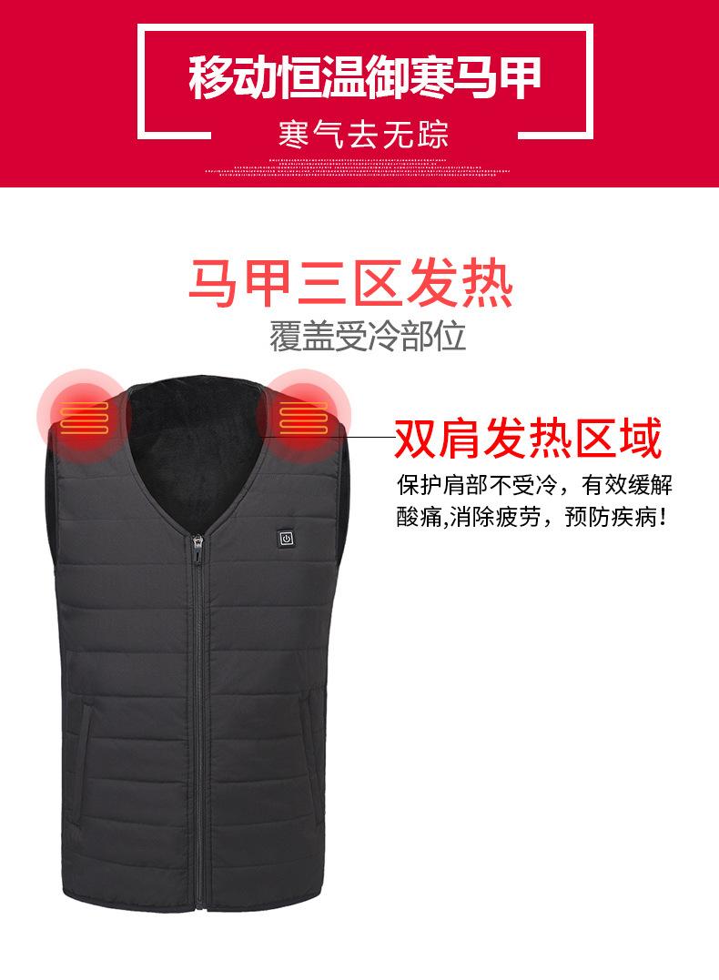 Chaleco calefactable de tres zonas, temperatura constante inteligente, para hombre y mujer, chaqueta acolchada calefactable por USB, chaleco cálido con capucha de color sólido