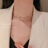 Collar coreano de oro auténtico con galvanoplastia, personalidad sencilla y collar de perlas de diamantes, diseño elegante de celebridades de Internet para mujeres.