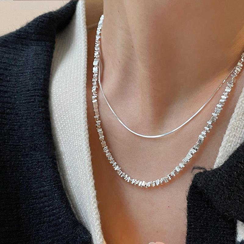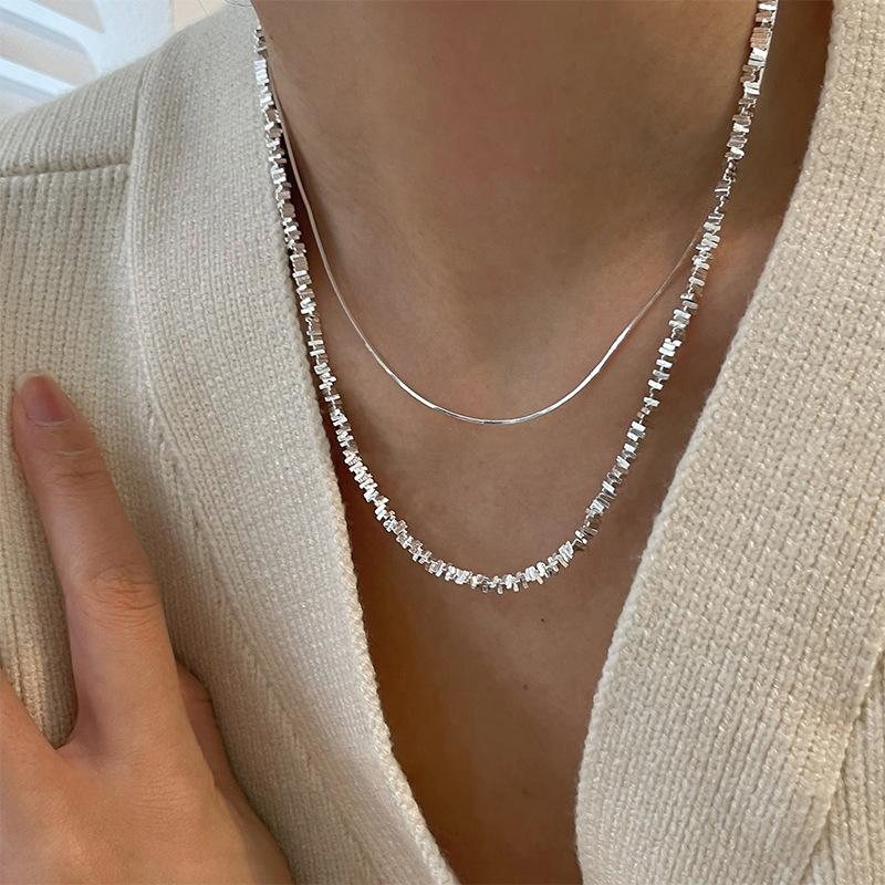 Collar de plata de ley con diseño de nicho de lujo ligero y triangular para mujer, cadena de clavícula apilada que combina con todo, moderno y personalizado.