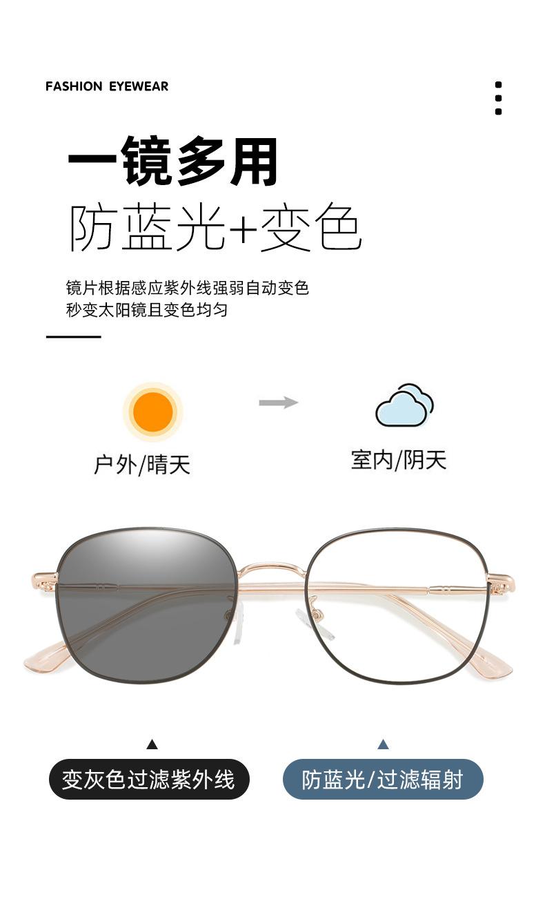 Gafas ultraligeras de estilo nuevo, de metal, estilo retro, de doble haz, anti-luz azul, con drenaje para mujer, gafas que cambian de color.