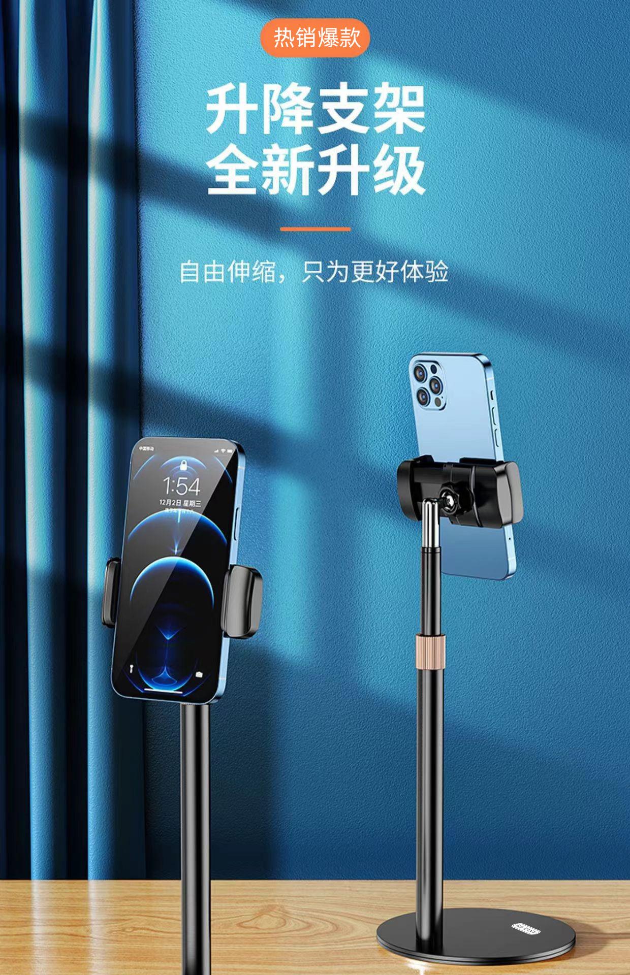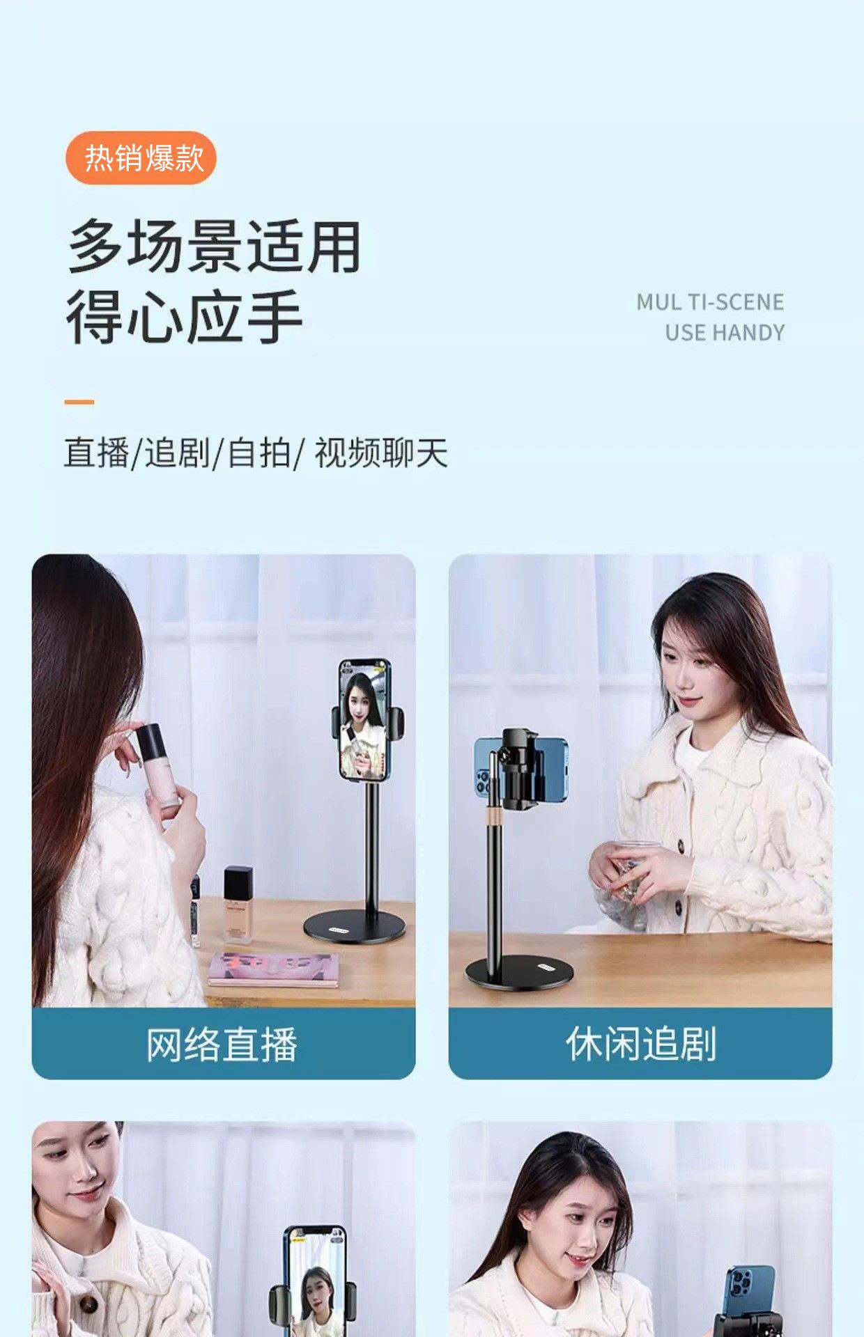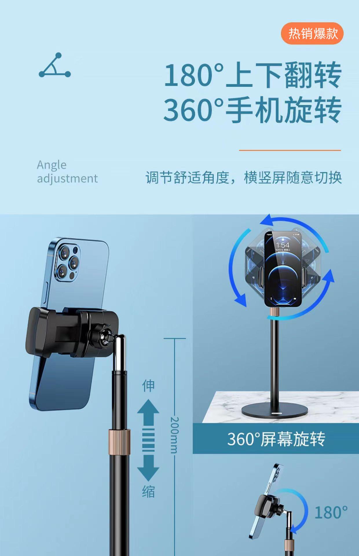 Soporte para teléfono móvil de escritorio en vivo, soporte de video retráctil giratorio con almohadilla superior multifunción, venta al por mayor