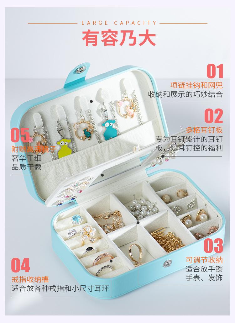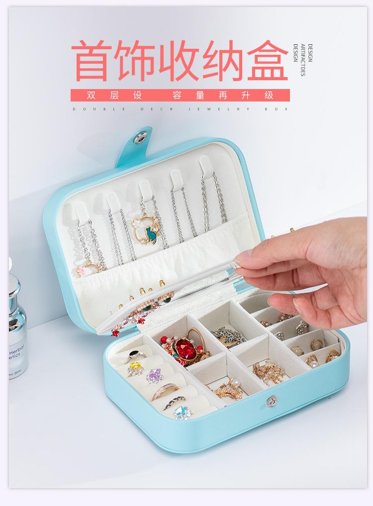 Caja de Joyería, Caja de Almacenamiento de Joyería, Arete de Doble Capa, Anillo, Caja de Almacenamiento y Organización de Collares, Caja de Maquillaje Portátil