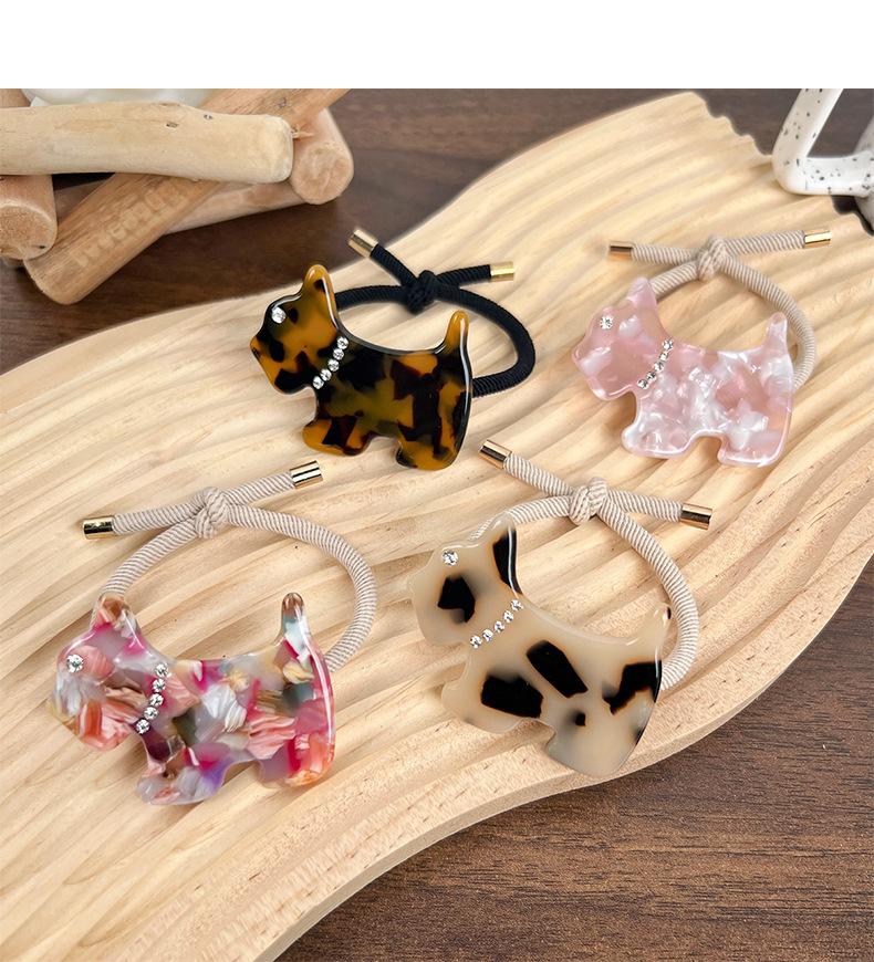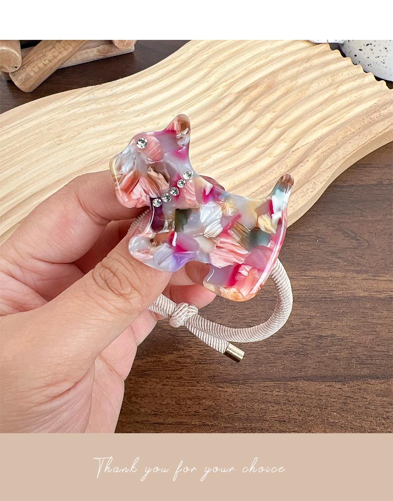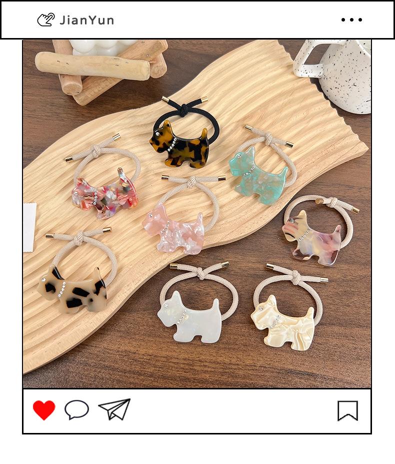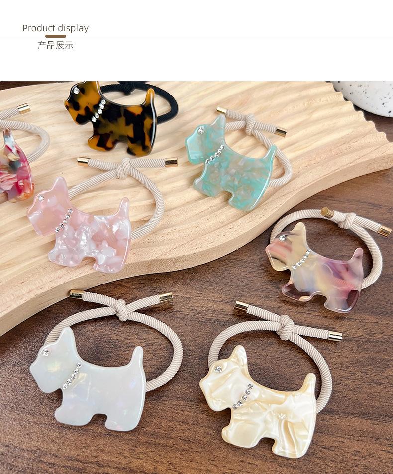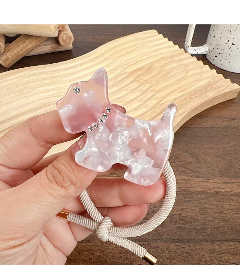 [Procesamiento y Personalización] Nueva Banda para el Cabello de Cachorro de Acetato Incrustada de Diamantes Estilo Coreano Dopamina Chica Corazón Cola de Caballo Accesorios para el Cabello