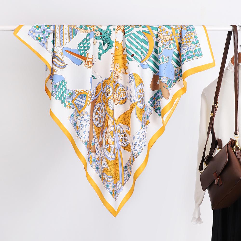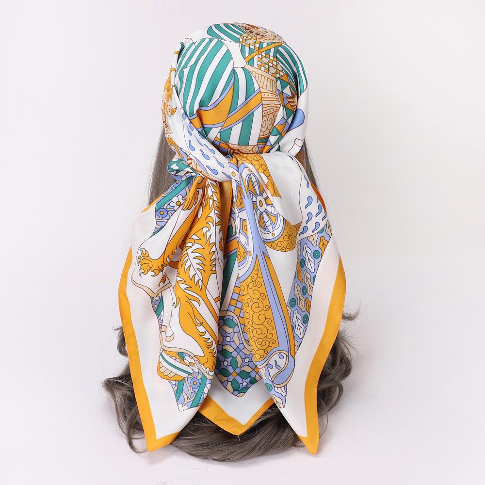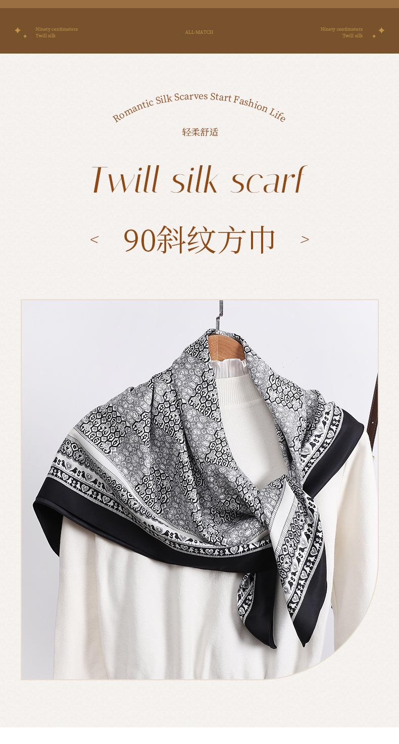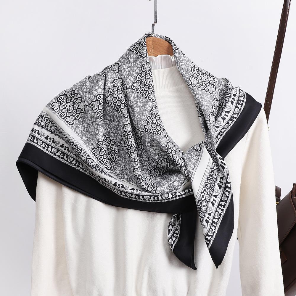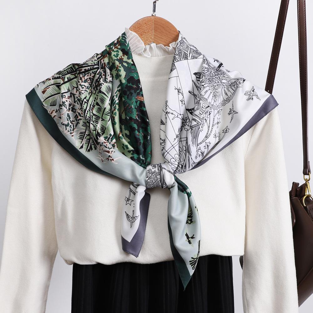 Nueva Bufanda Retro Estampada Moda Mujer Sarga Elegante Chal 90cm Bufanda Cuadrada Grande Bufanda Protector Solar de Verano