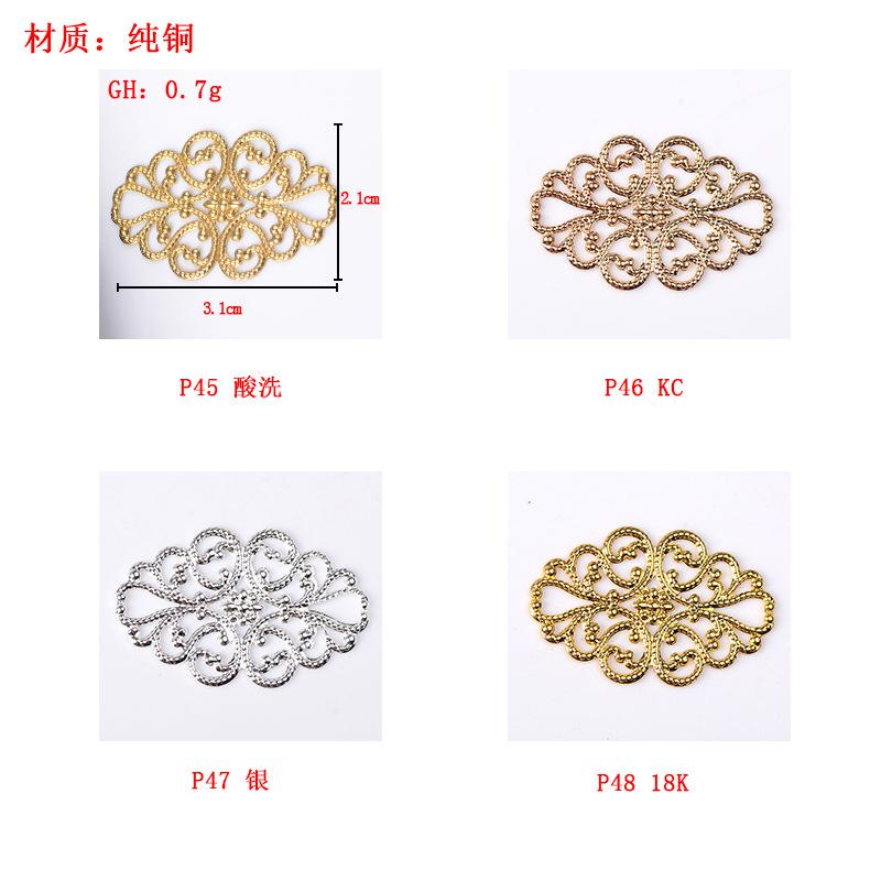 P45-pickled brass, P46-KC gold, P47-Silver, P48-18K gold