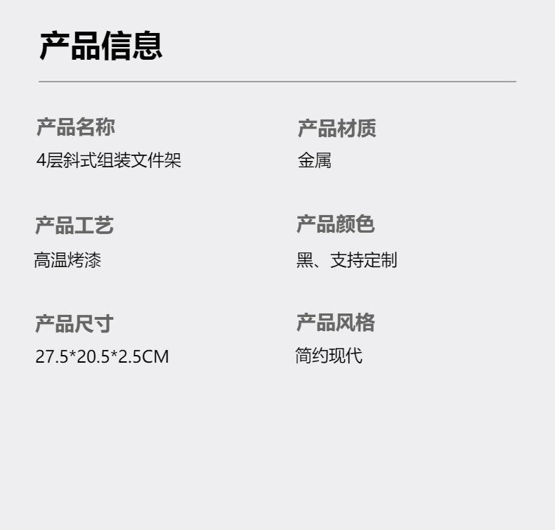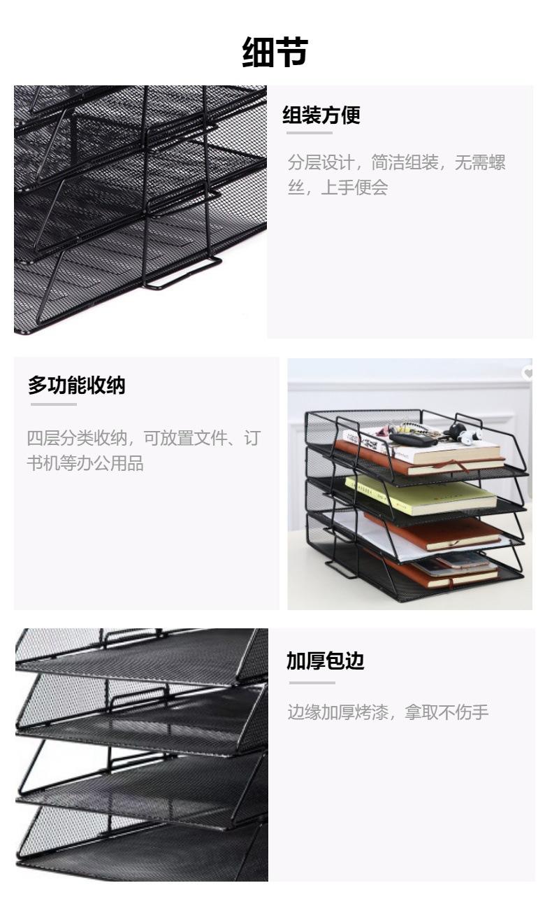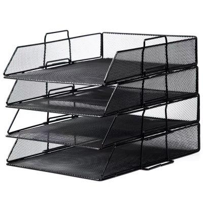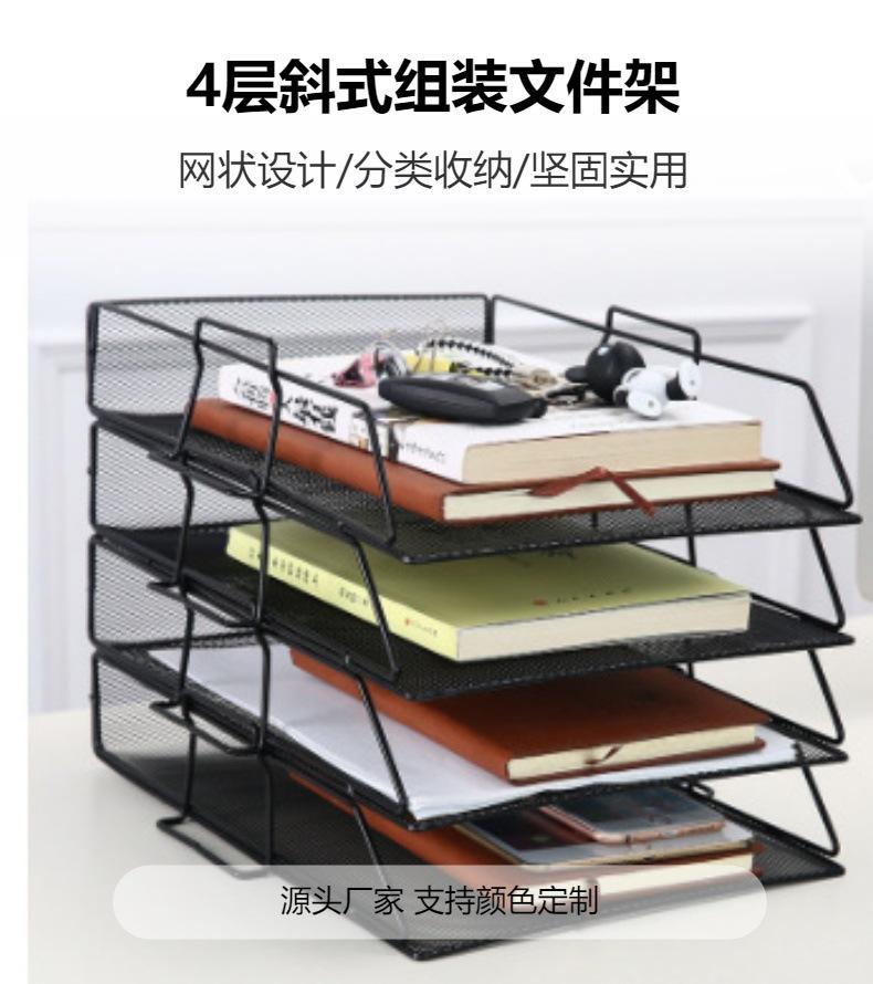 Estante para archivos de 4 capas inclinado, extraíble y de rejilla de alambre de hierro de gran venta transfronteriza, que se puede apilar para almacenar archivos.