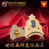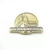 Insignia recortada electrochapada de bronce retro estéreo de forma especial, personalizada, de aleación de zinc fundido a presión, con broche de metal.