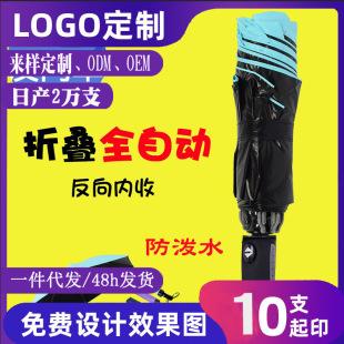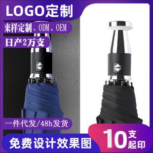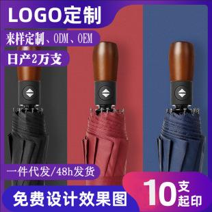 Paraguas de plástico negro con mango de madera, 10 paraguas totalmente automáticos de diez huesos, sombrilla plegable de tres pliegues, paraguas de regalo empresarial, paraguas publicitario con logotipo personalizado.