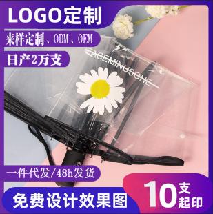 Paraguas transparente POE al por mayor con logotipo impreso de margaritas, paraguas automático, paraguas plegable de estilo japonés para estudiantes, paraguas literario fresco para mujeres.