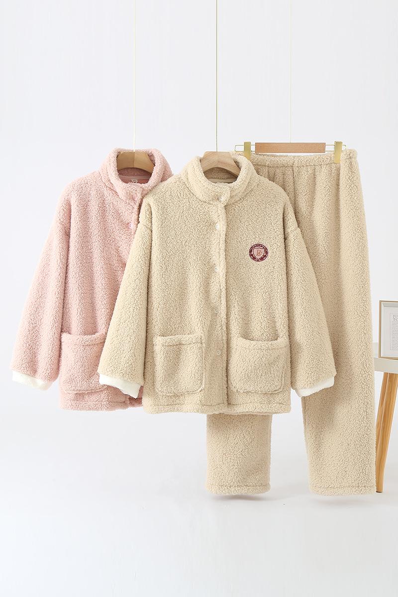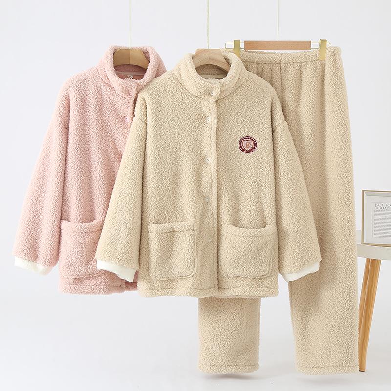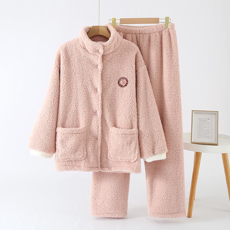 Pijama de invierno para mujer, forro polar bereber cálido, cuello alto, franela, color sólido, se puede usar al aire libre, ropa de casa de invierno holgada para mujer