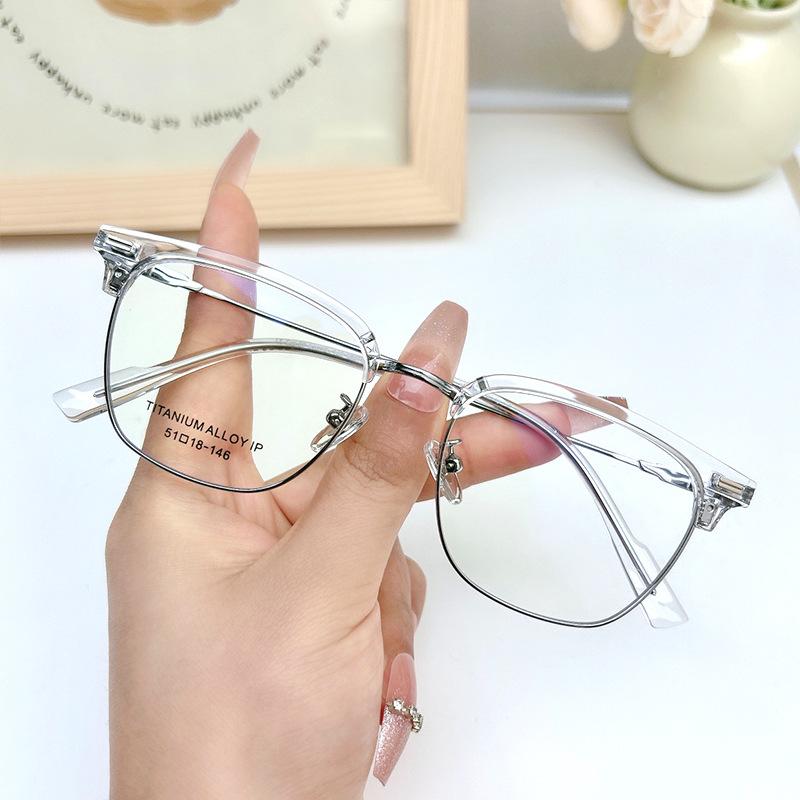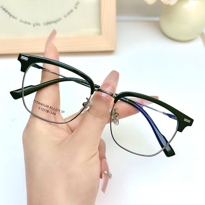 MMT90003 montura de ceja semititanio para hombre de cara grande se puede equipar con montura para gafas de miopía para hombre y mujer iguales gafas planas