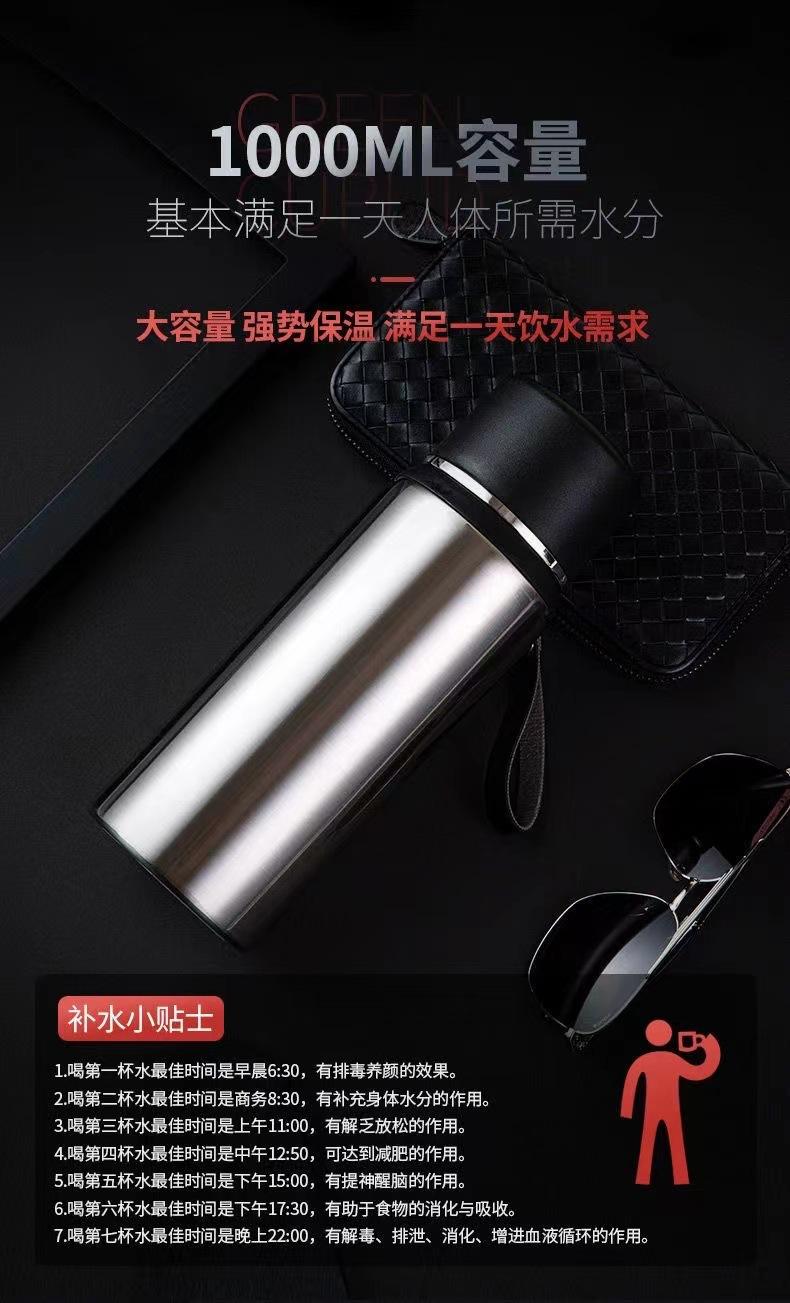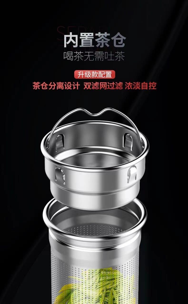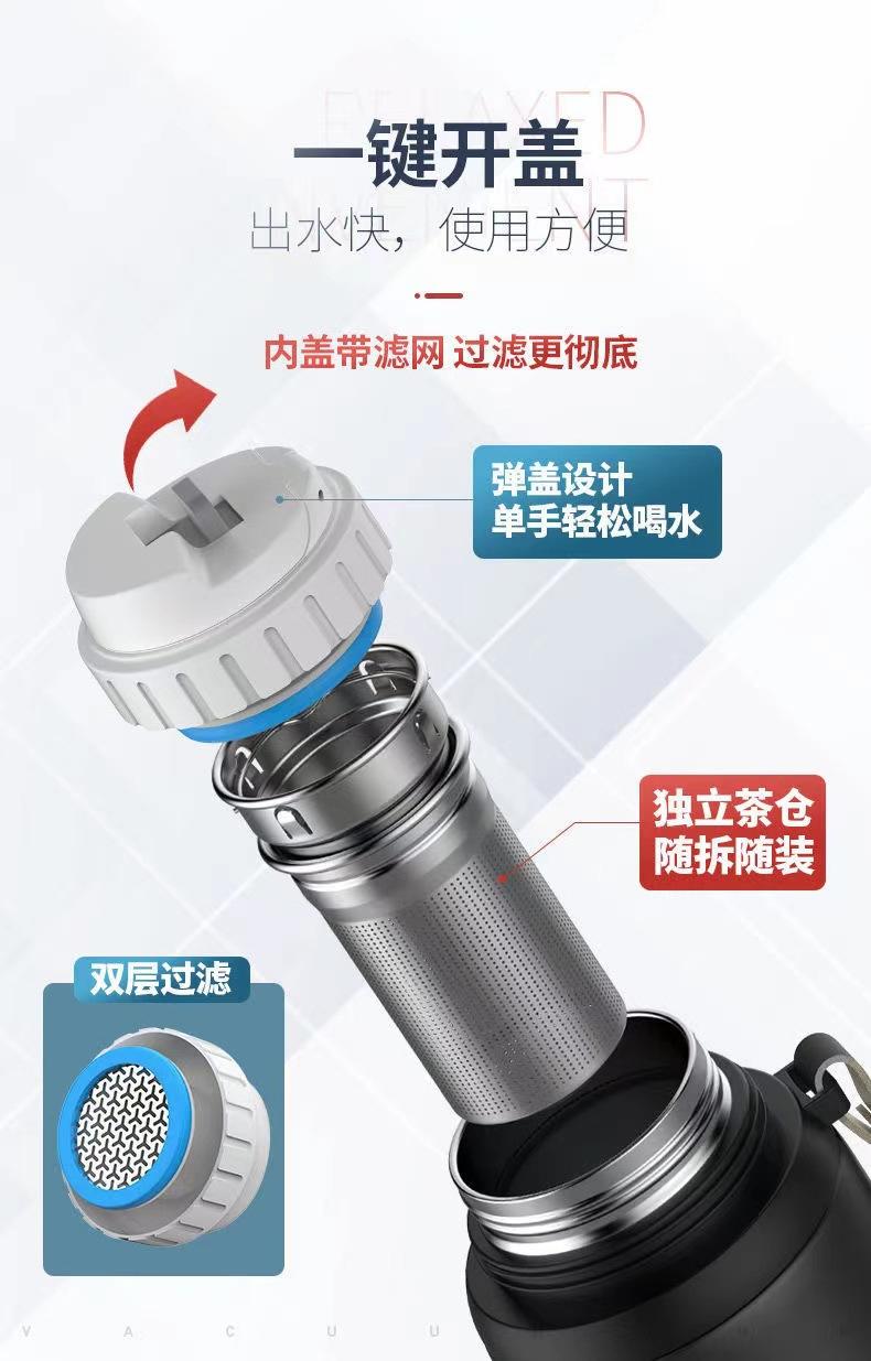 Termo de Gran Capacidad para Hombres y Mujeres Separación de Té y Agua Taza de Té Acero Inoxidable 304 Doble Tapa Vaso de Agua Portátil para Exterior Venta al por Mayor