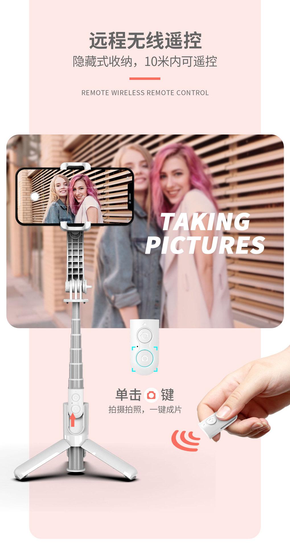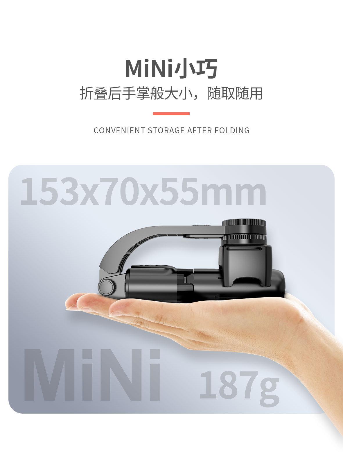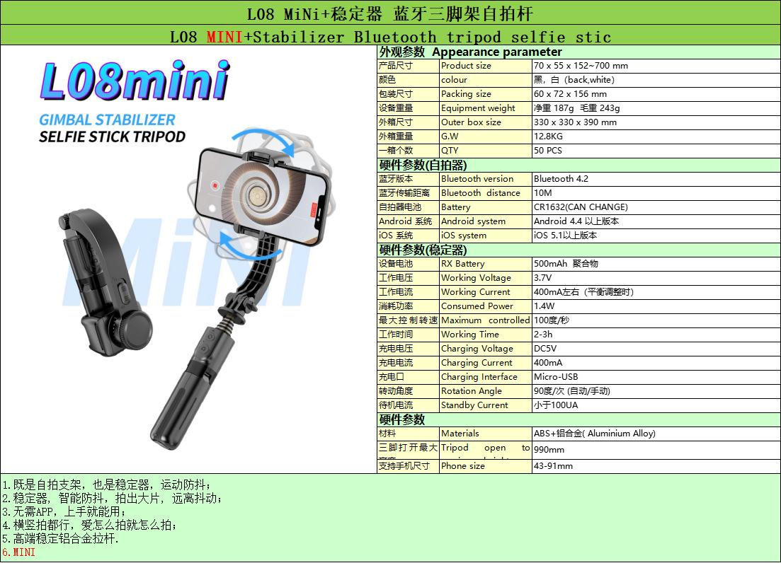 Mini teléfono móvil palo selfie estable L08mini control remoto Bluetooth disparo PTZ de mano soporte integrado antivibración