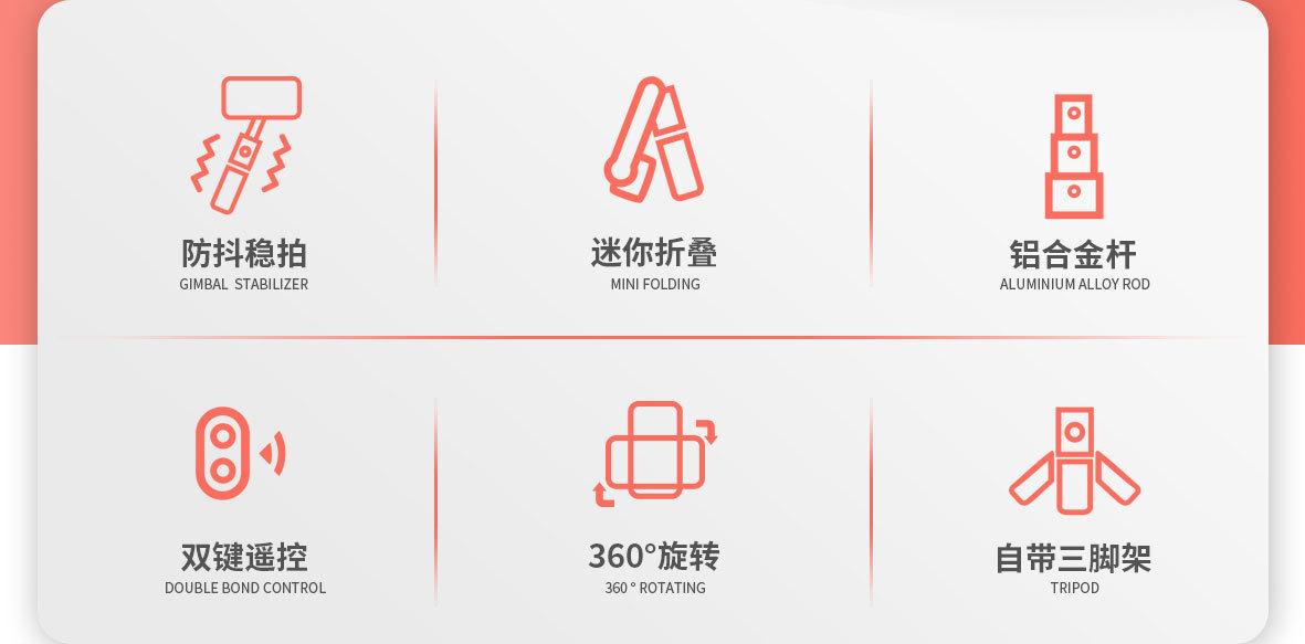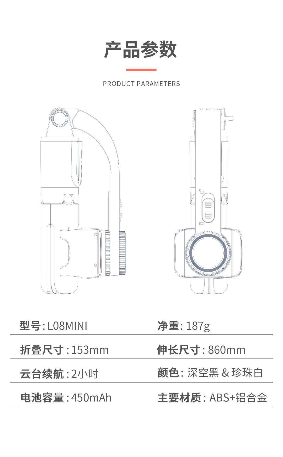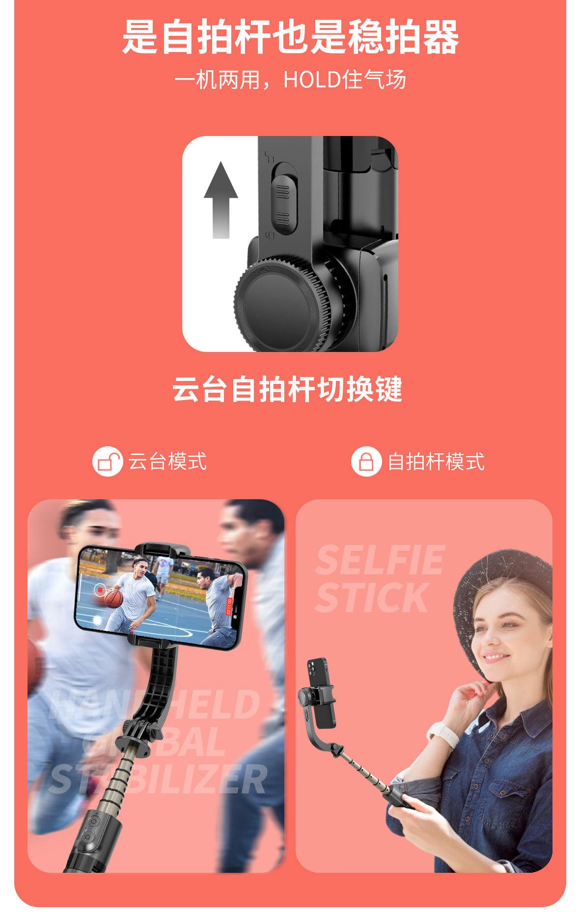 Mini teléfono móvil palo selfie estable L08mini control remoto Bluetooth disparo PTZ de mano soporte integrado antivibración