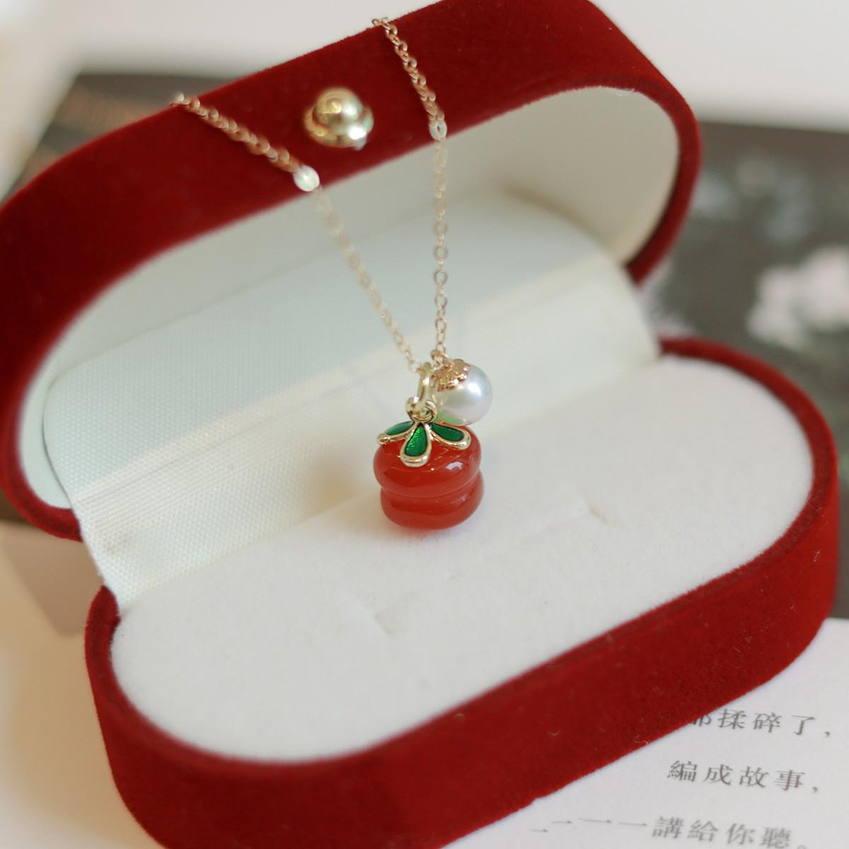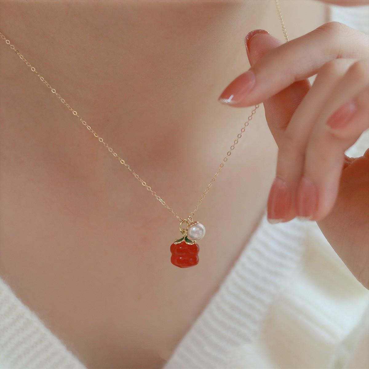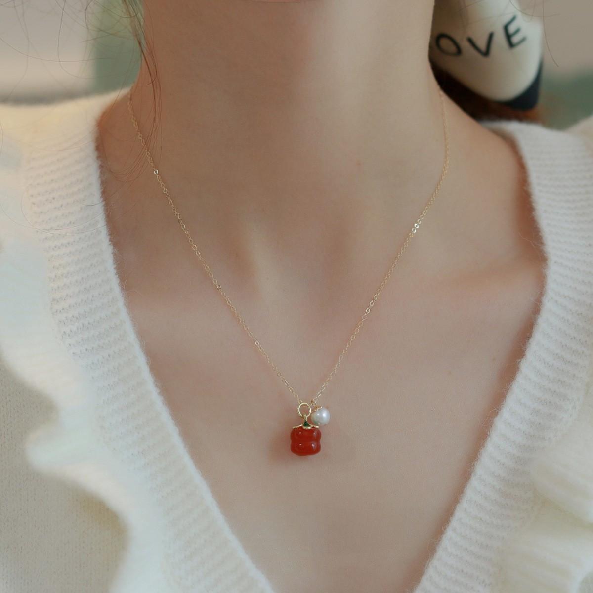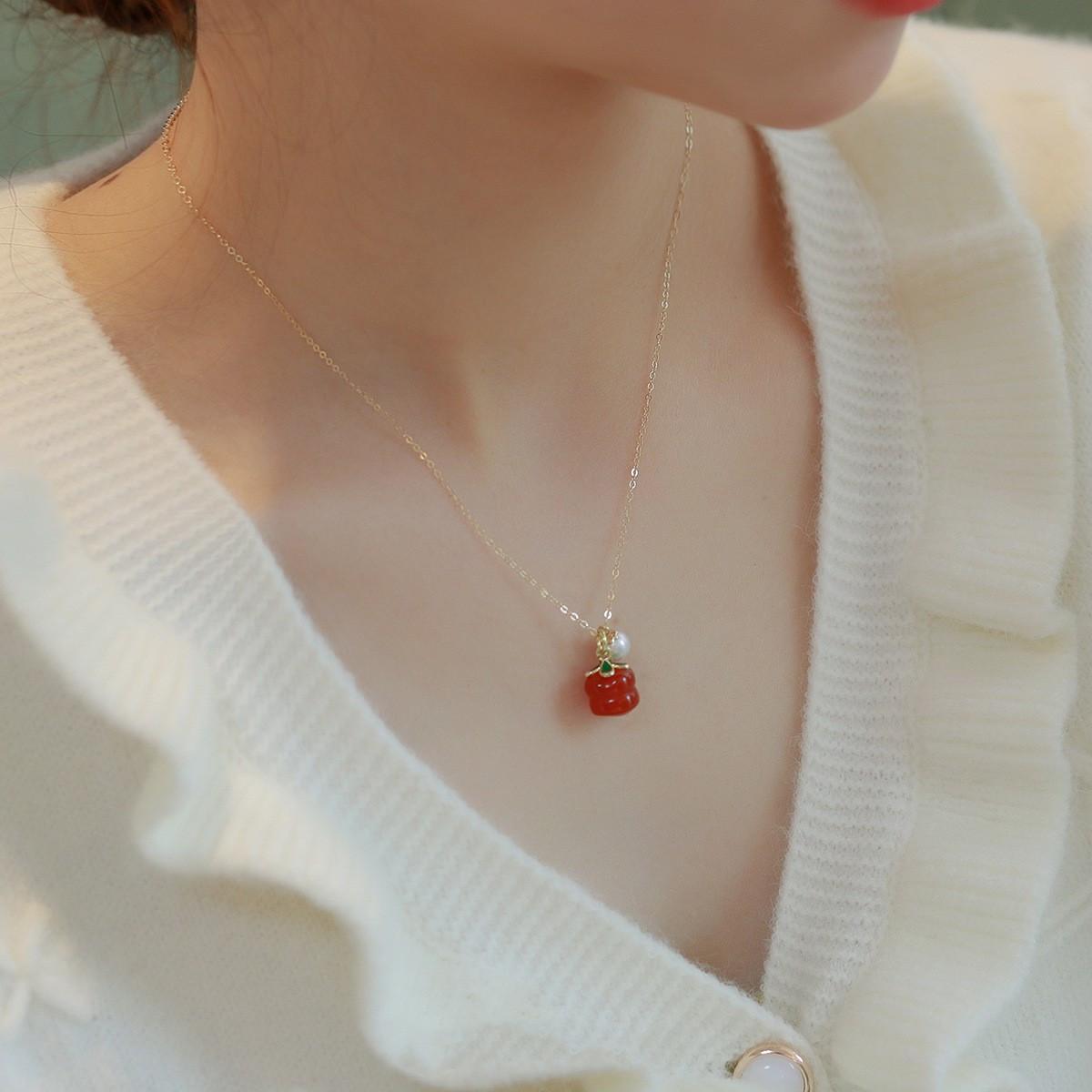 Nuevo collar de perlas de ágata roja del sur natural, diseño de nicho para mujer, cadena de clavícula sencilla que combina con todo, cadena de suéter para mujer