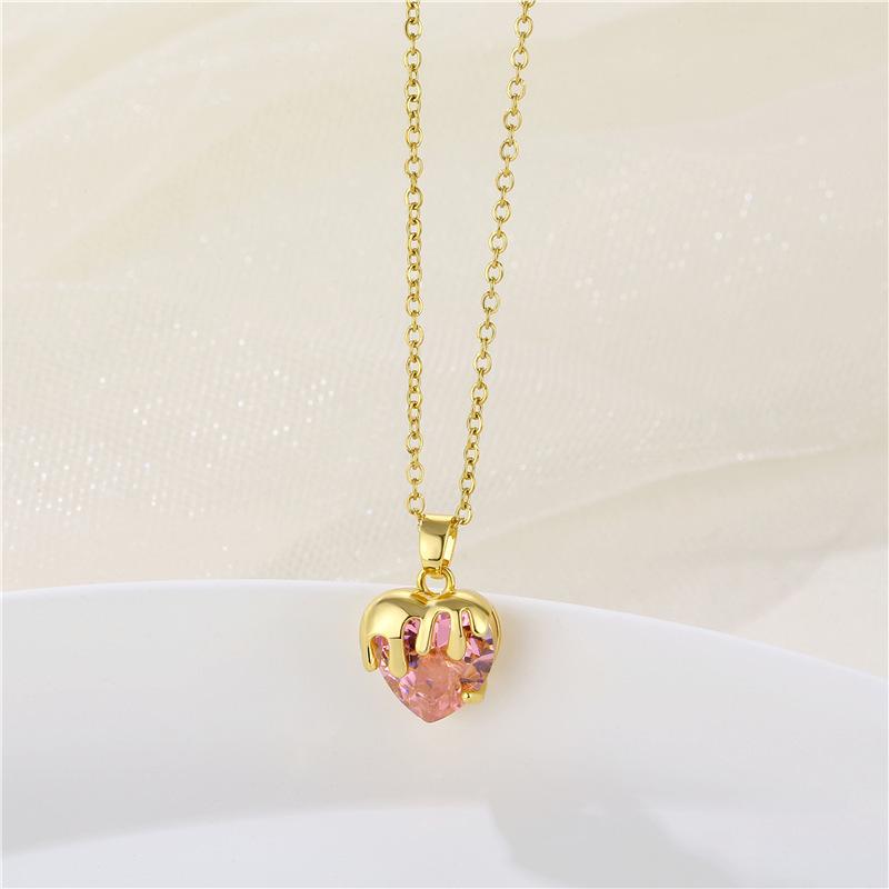 Collar de amor con circonitas de joyería transfronteriza de Europa y Estados Unidos, cadena de clavícula de cristal en forma de corazón de alto sentido, collar de corazón de melocotón de nicho para mujer
