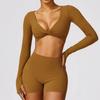 Modelo de Gran Venta No Retornable No Intercambiable Traje de Yoga de Manga Larga Sexy Ajustado Traje Deportivo de Secado Rápido Traje de Fitness para Correr 8552