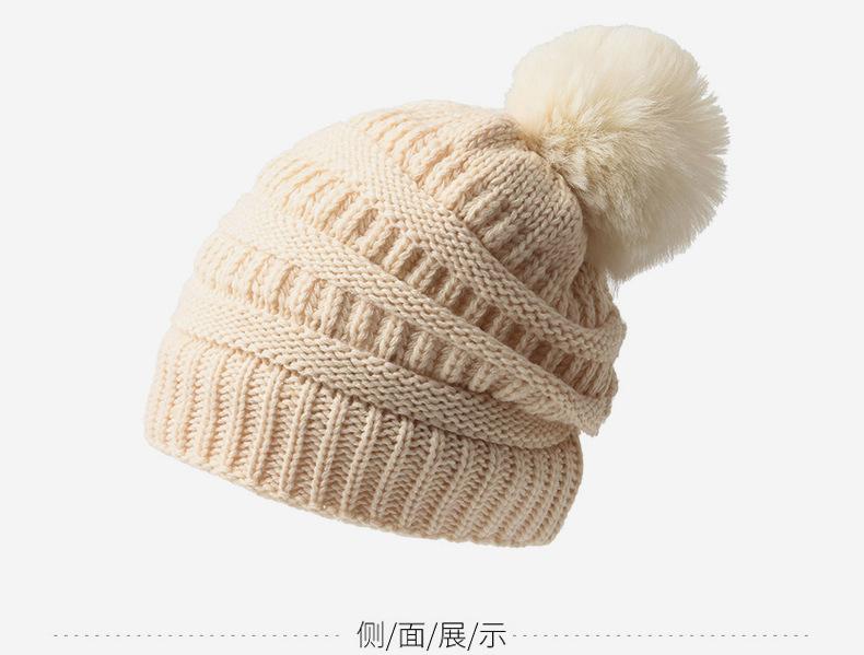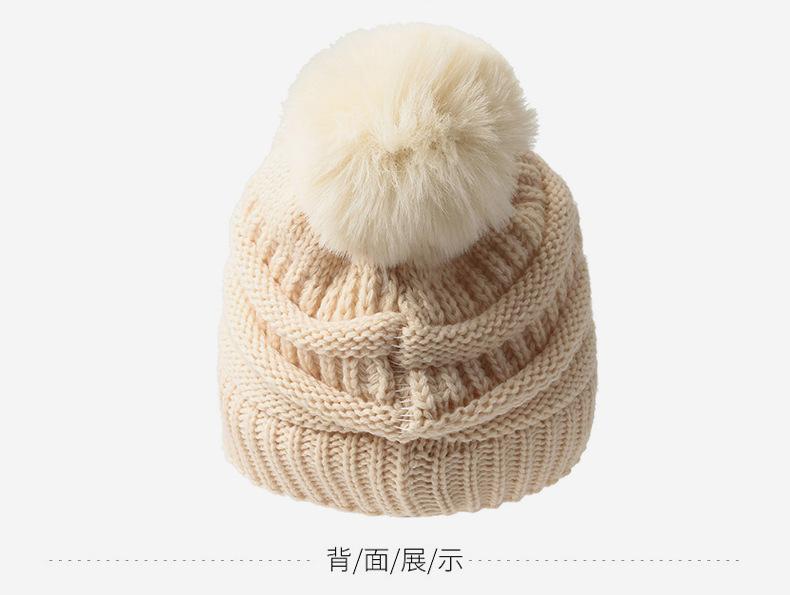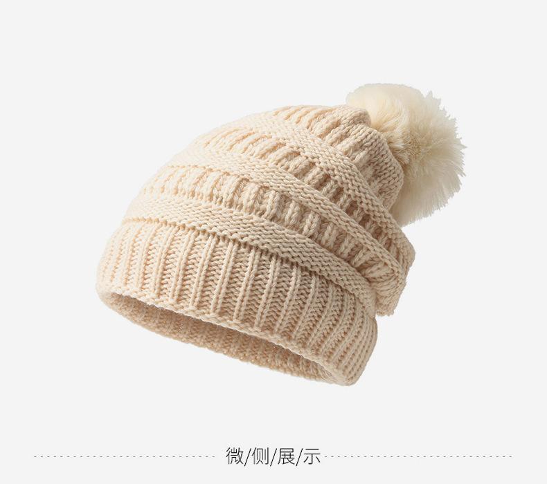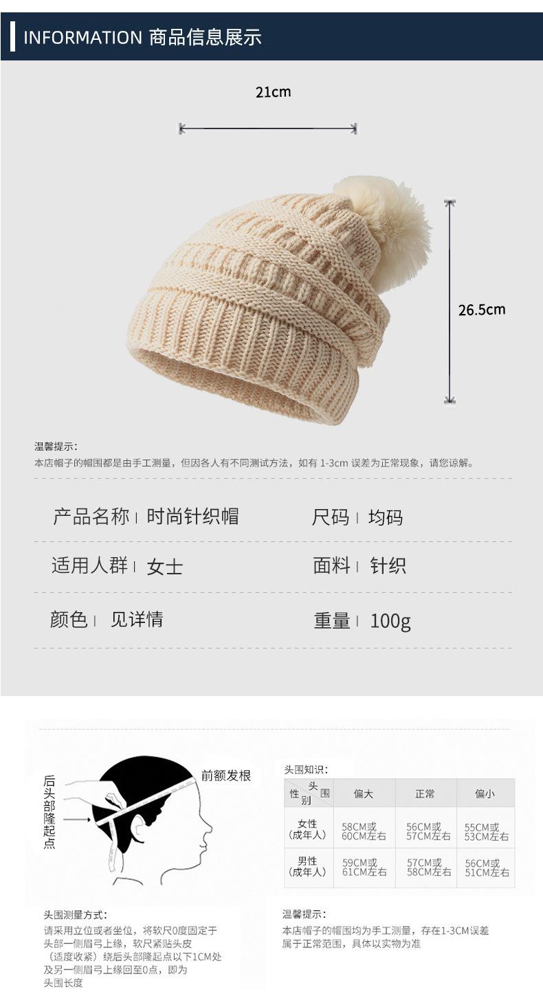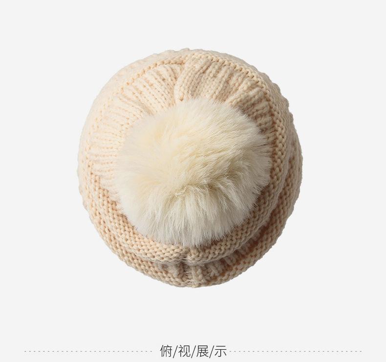 Gorro de Lana con Bola de Pelo para Mujer Otoño e Invierno Estilo Coreano Moda Gorro Tejido Trenzado Cabeza Grande Engrosado Cálido Gorro Pulóver