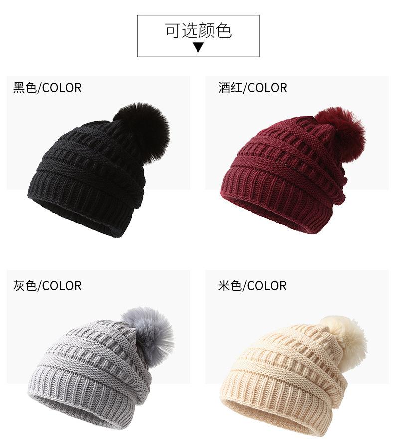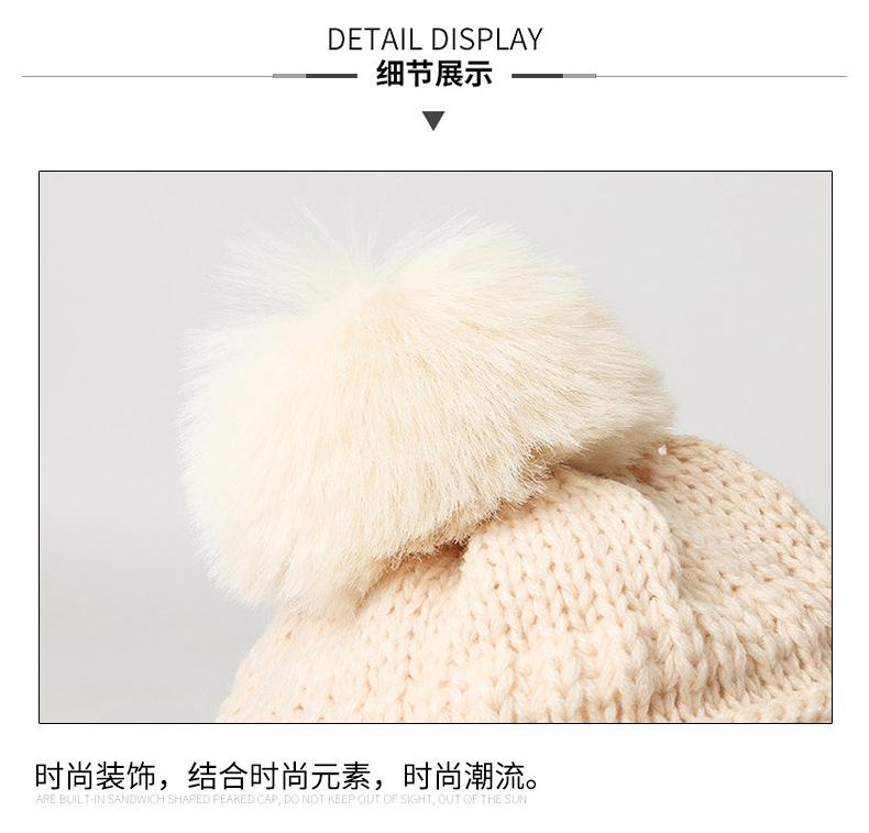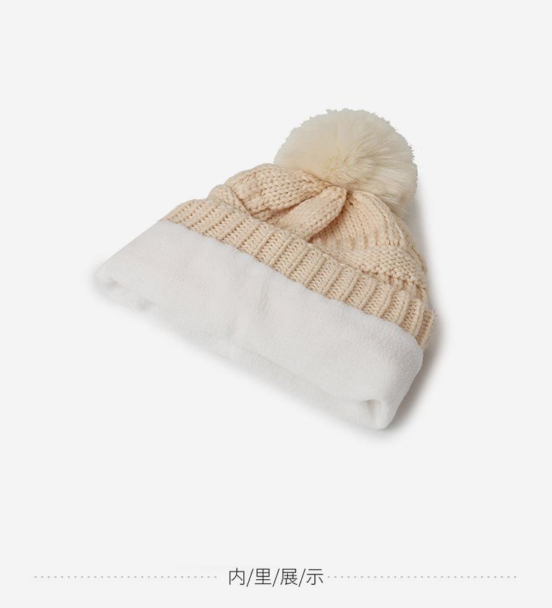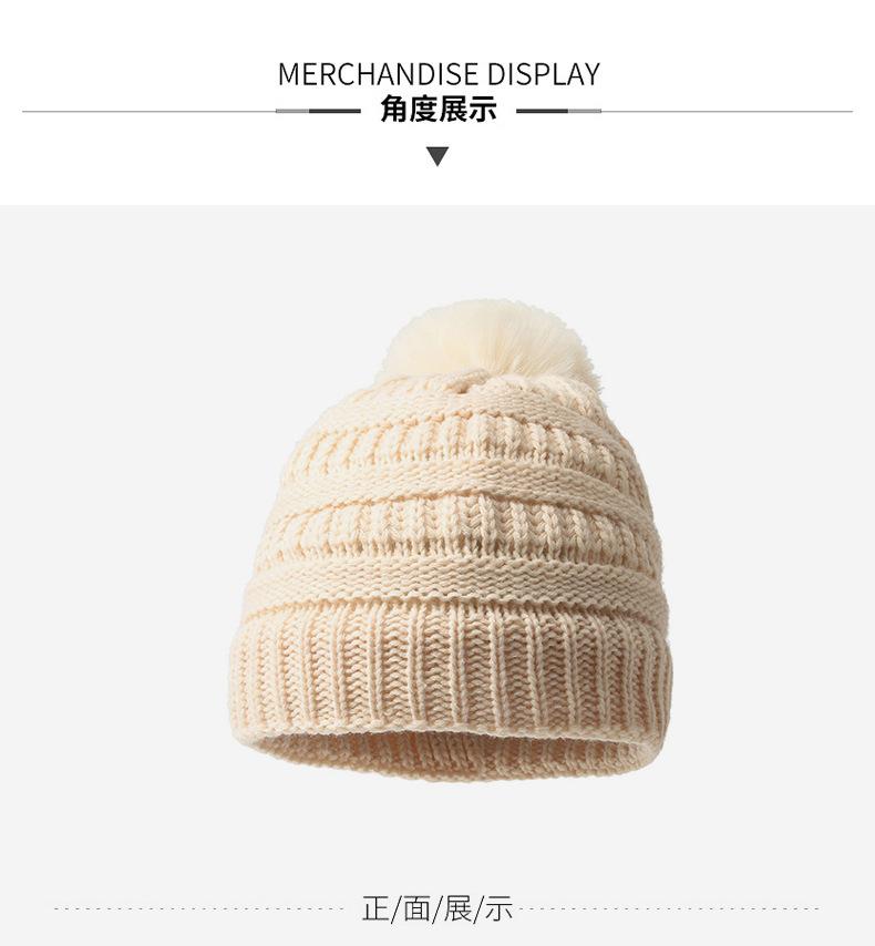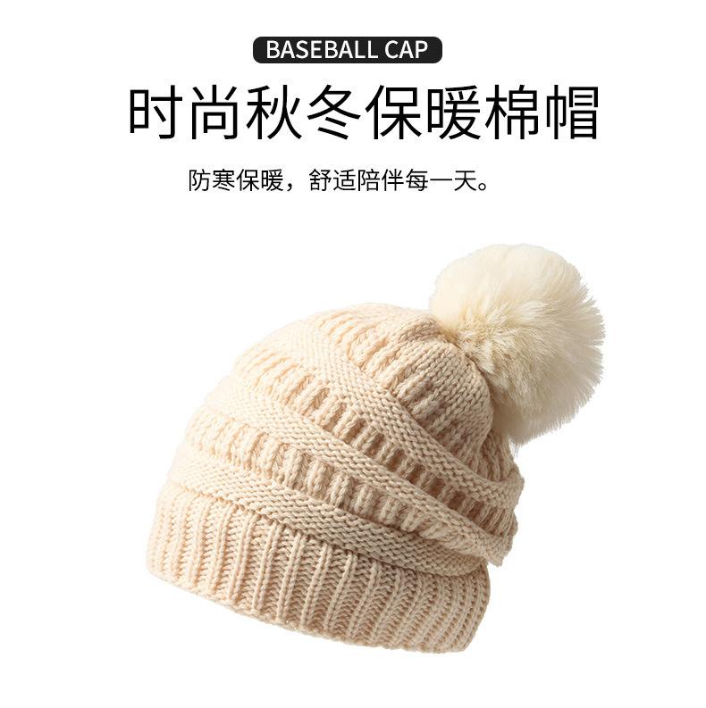 Gorro de Lana con Bola de Pelo para Mujer Otoño e Invierno Estilo Coreano Moda Gorro Tejido Trenzado Cabeza Grande Engrosado Cálido Gorro Pulóver