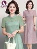 Vestido de mamá de acetato de longitud media versión mejorada del vestido cheongsam, ropa de banquete de boda, ropa de mujer de mediana edad, nuevo estilo de otoño 2021