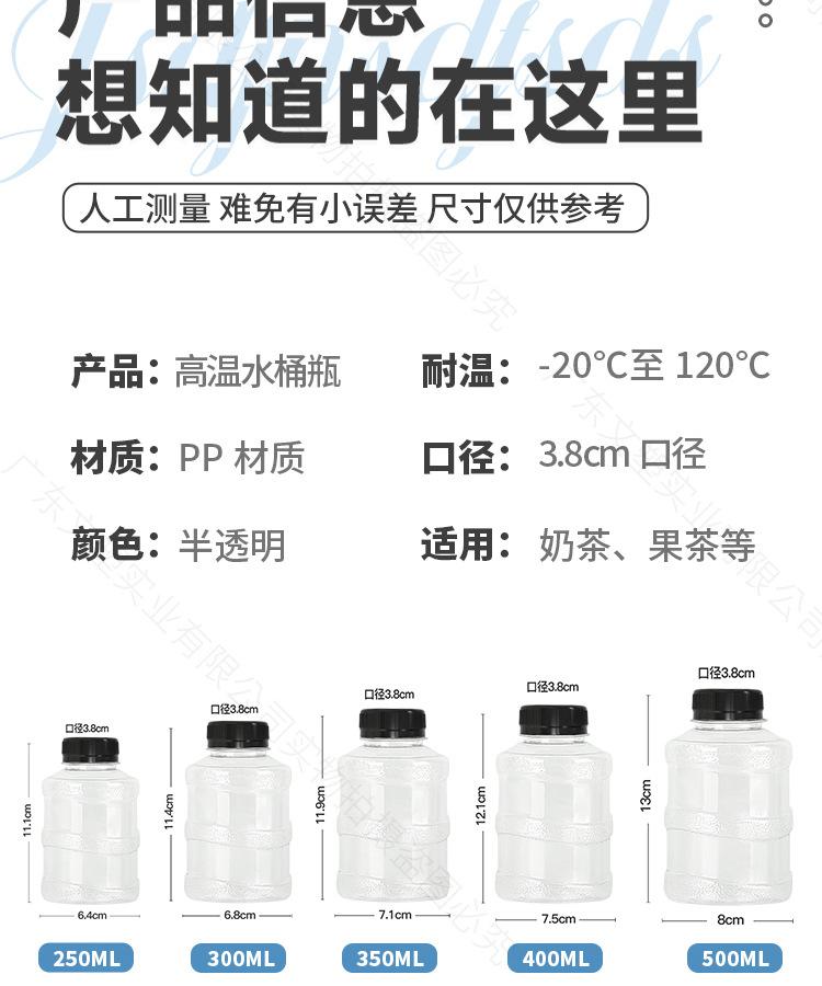 High temperature resistant 250ml bucket bottle*1/80 pieces per box; black cap (if the bottle is insufficient, the box will not be shipped)