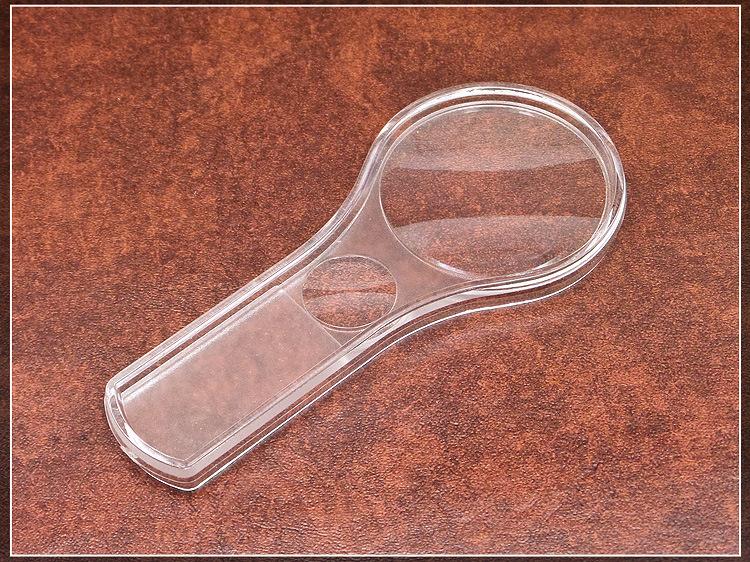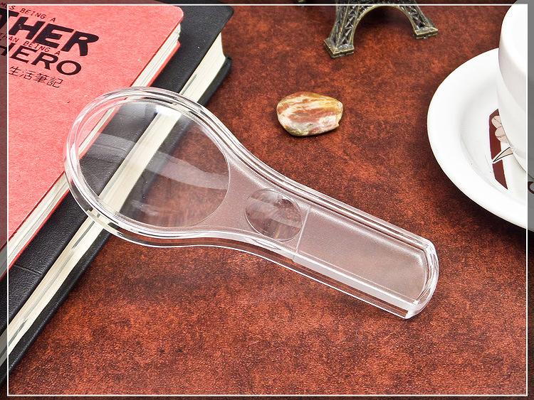 Lupa de mano transparente directa de fábrica, lupa de doble luz, lupa de 3 a 5 aumentos