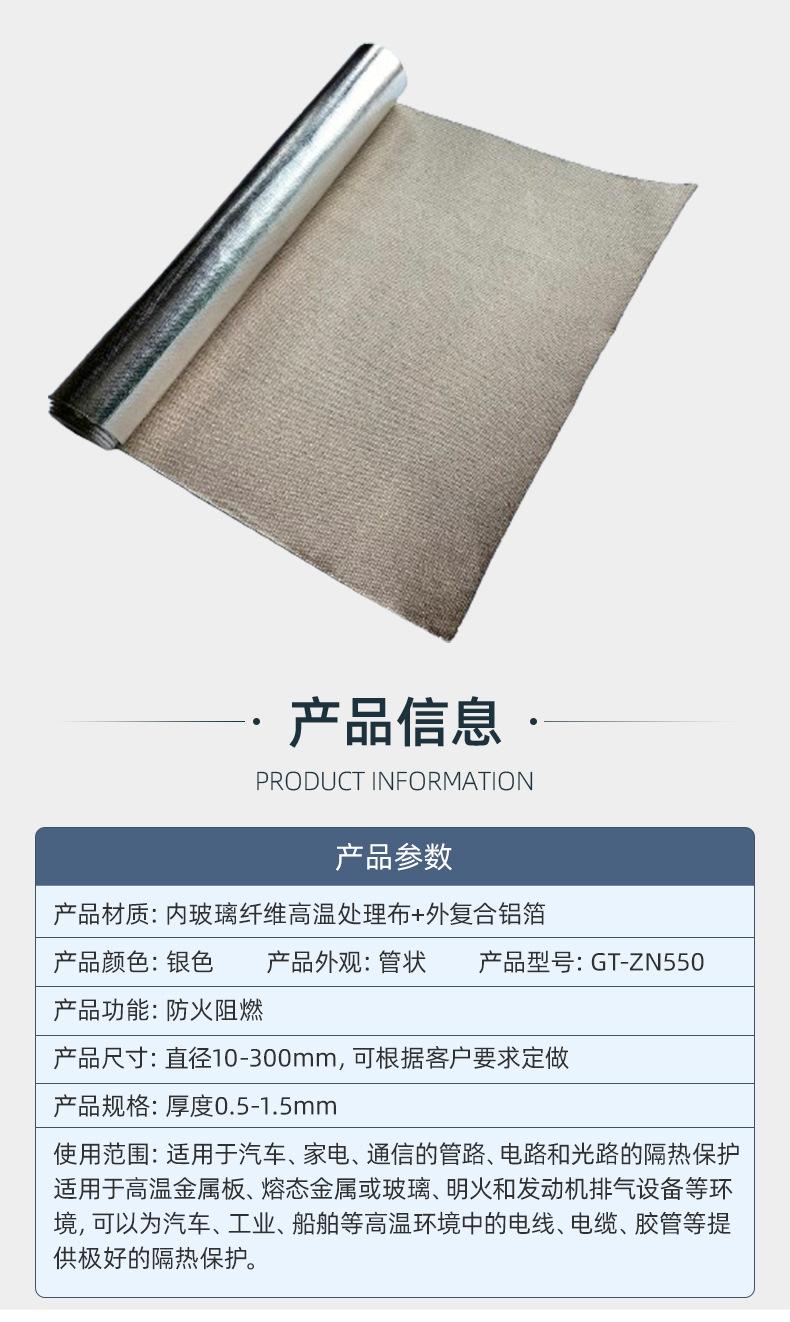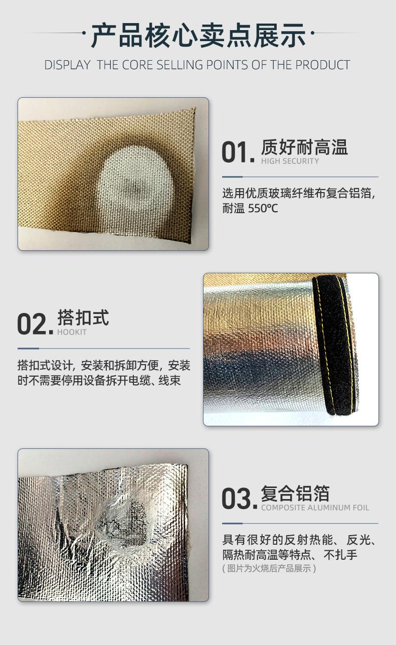 Carcasa ignífuga a presión, lámina de aluminio, fibra de vidrio, cubierta protectora anti-escaldaduras resistente a altas temperaturas, protección de línea a prueba de salpicaduras