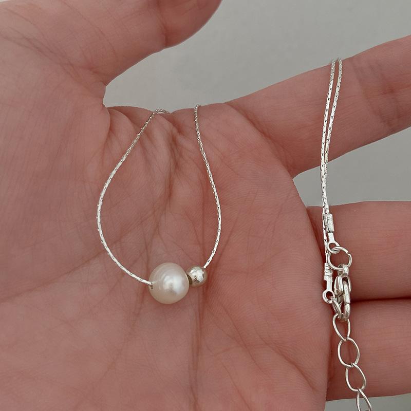 Cadena de hueso de serpiente con frijol de perla natural para mujer, verano, diseño de nicho simple, cadena para clavícula exquisita para ir al trabajo, collar de cadena de moda