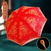 Nuevo paraguas nupcial con mango de gema boda boda encaje bordado estilo chino boda paraguas de mango largo